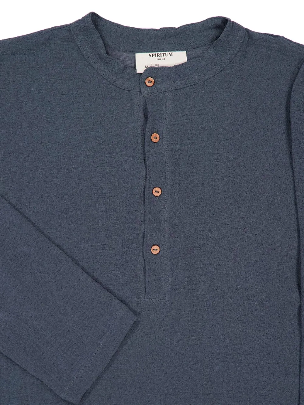 Индиго, застежка на пуговицы, длинные рукава, воротник-стойка