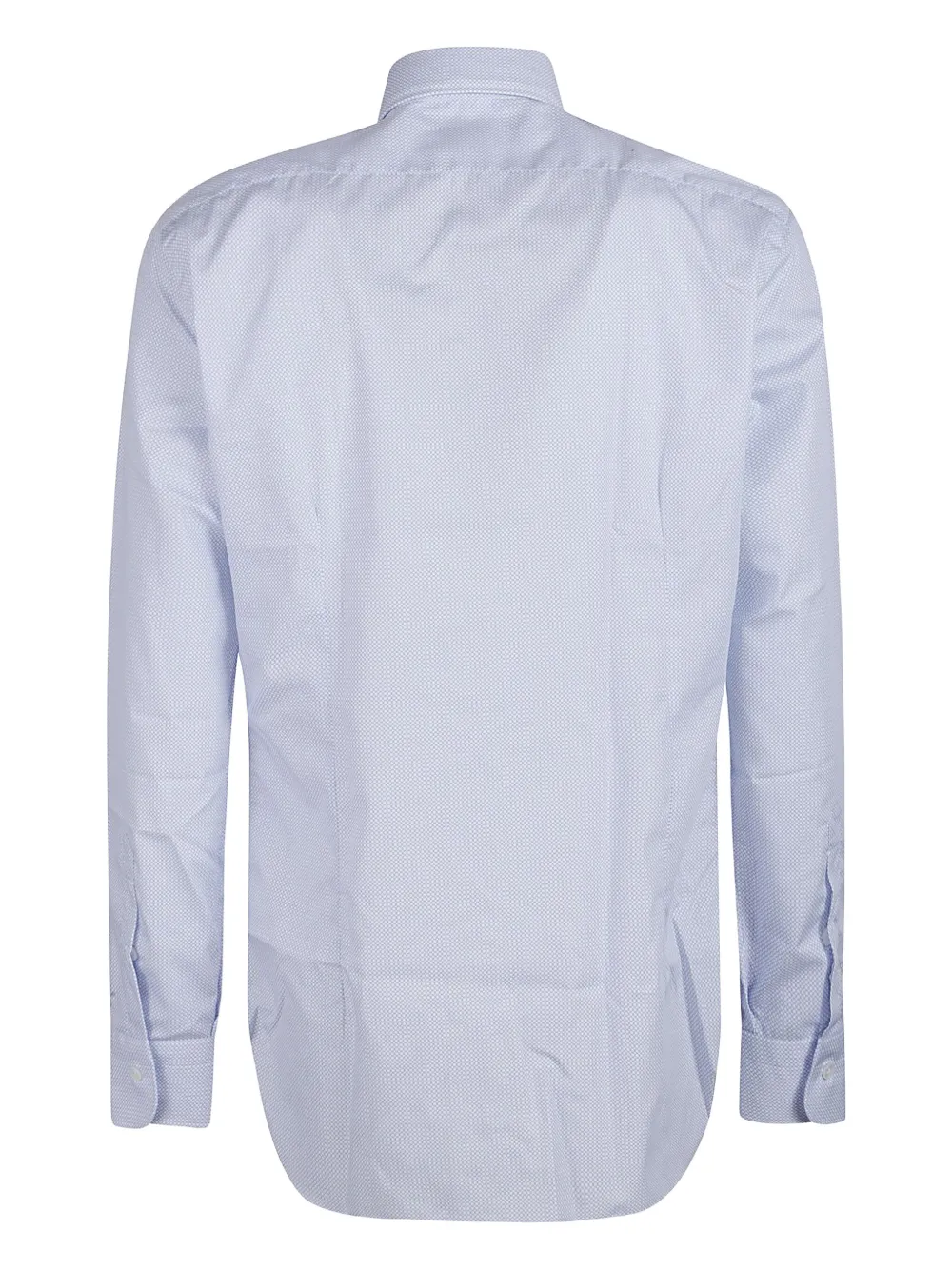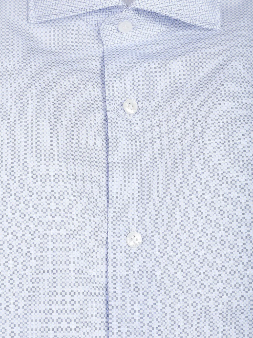 Светло-голубая рубашка из хлопка с микроузором, застежкой на пуговицы, длинными рукавами и классическим воротником