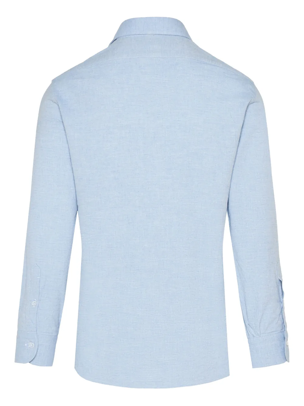 Светло-голубая рубашка с застежкой на пуговицы, длинными рукавами, манжетами на пуговицах и отложным воротником