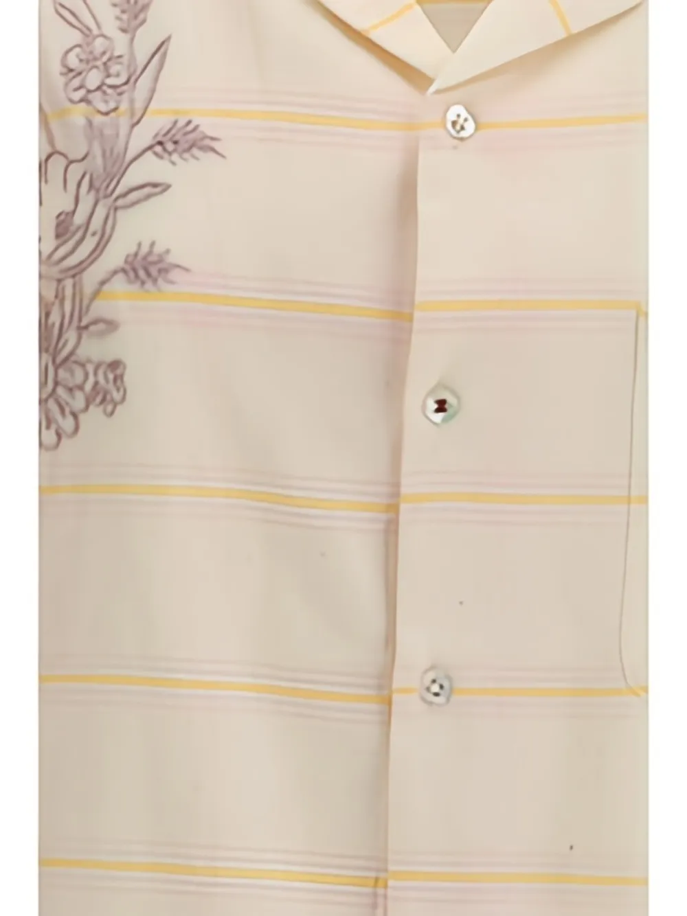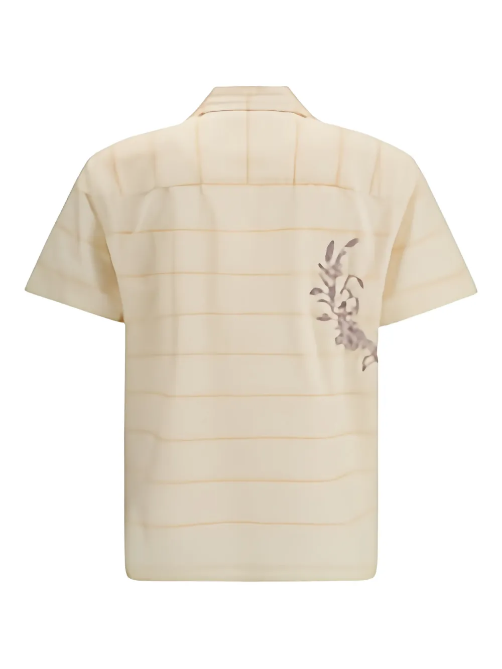 Бежевый с полосатым узором, короткие рукава, застежка на пуговицы, классический воротник