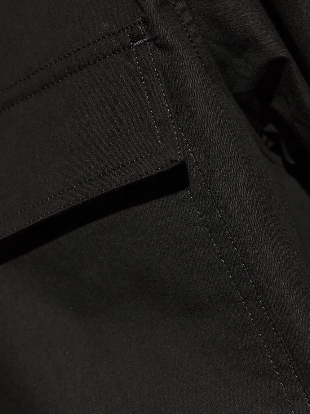 Черный цвет, накладные карманы, застежка на пуговицы, длинные рукава, манжеты на пуговицах, тональная строчка