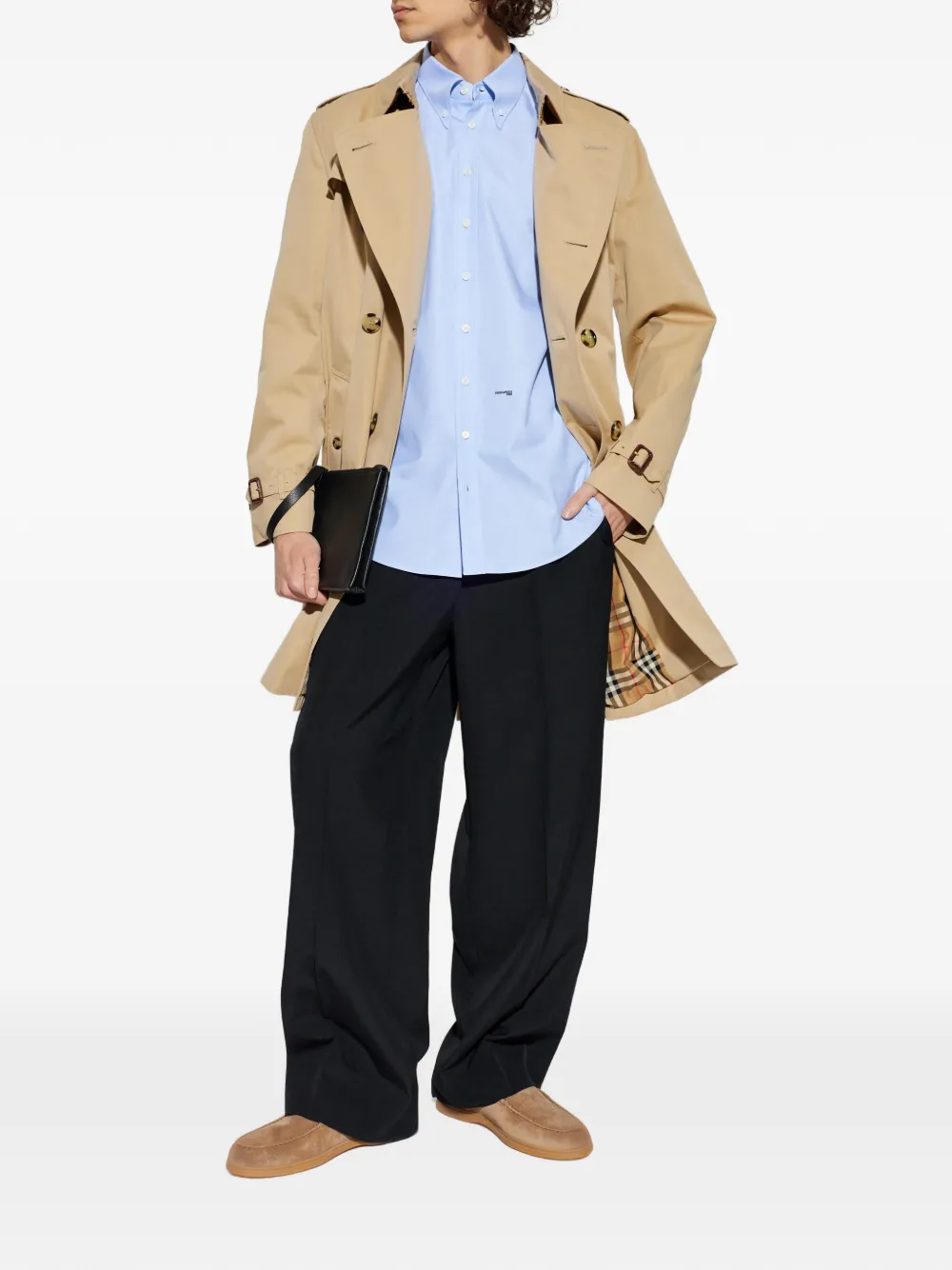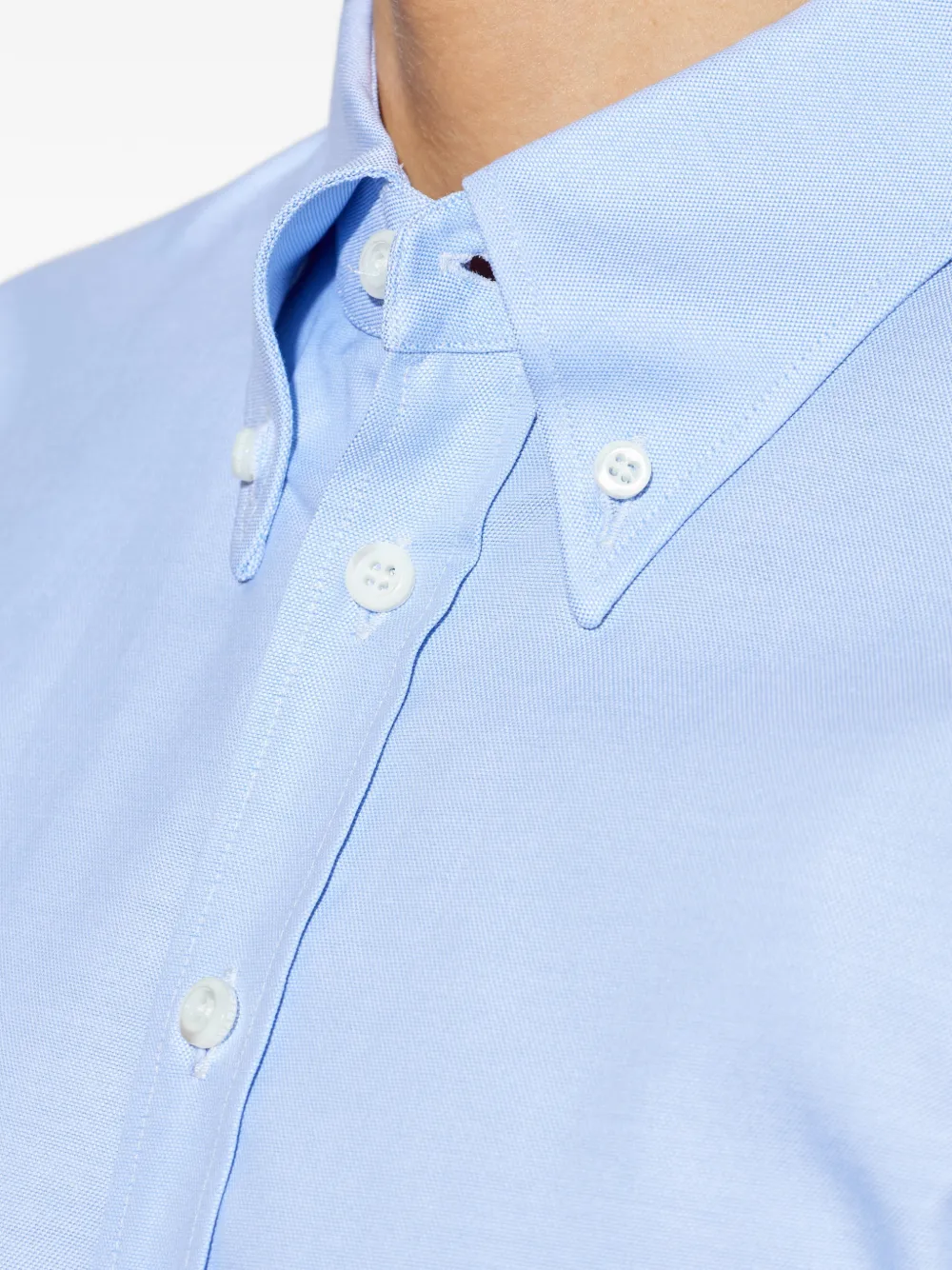 Светло-голубая рубашка с воротником на пуговицах, застежкой на пуговицы, длинными рукавами, манжетами на пуговицах, прямого кроя