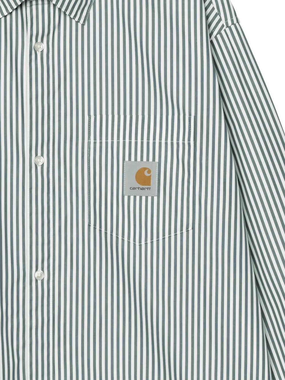 Белый/зеленый с полосатым узором, нагрудный карман, нашивка с логотипом, застежка на пуговицы, длинные рукава