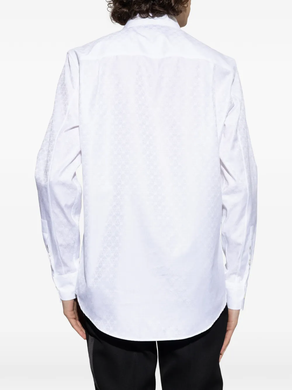 Белая рубашка с принтом черепа, застежкой на пуговицы, длинными рукавами, манжетами на пуговицах и классическим воротником