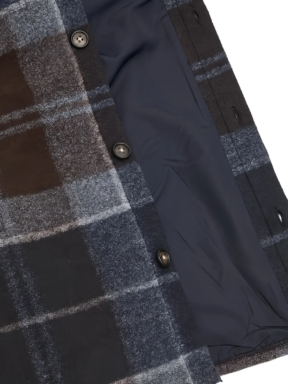Коричнево-голубой, застежка на пуговицы, нагрудные накладные карманы, крупный клетчатый узор, длинные рукава