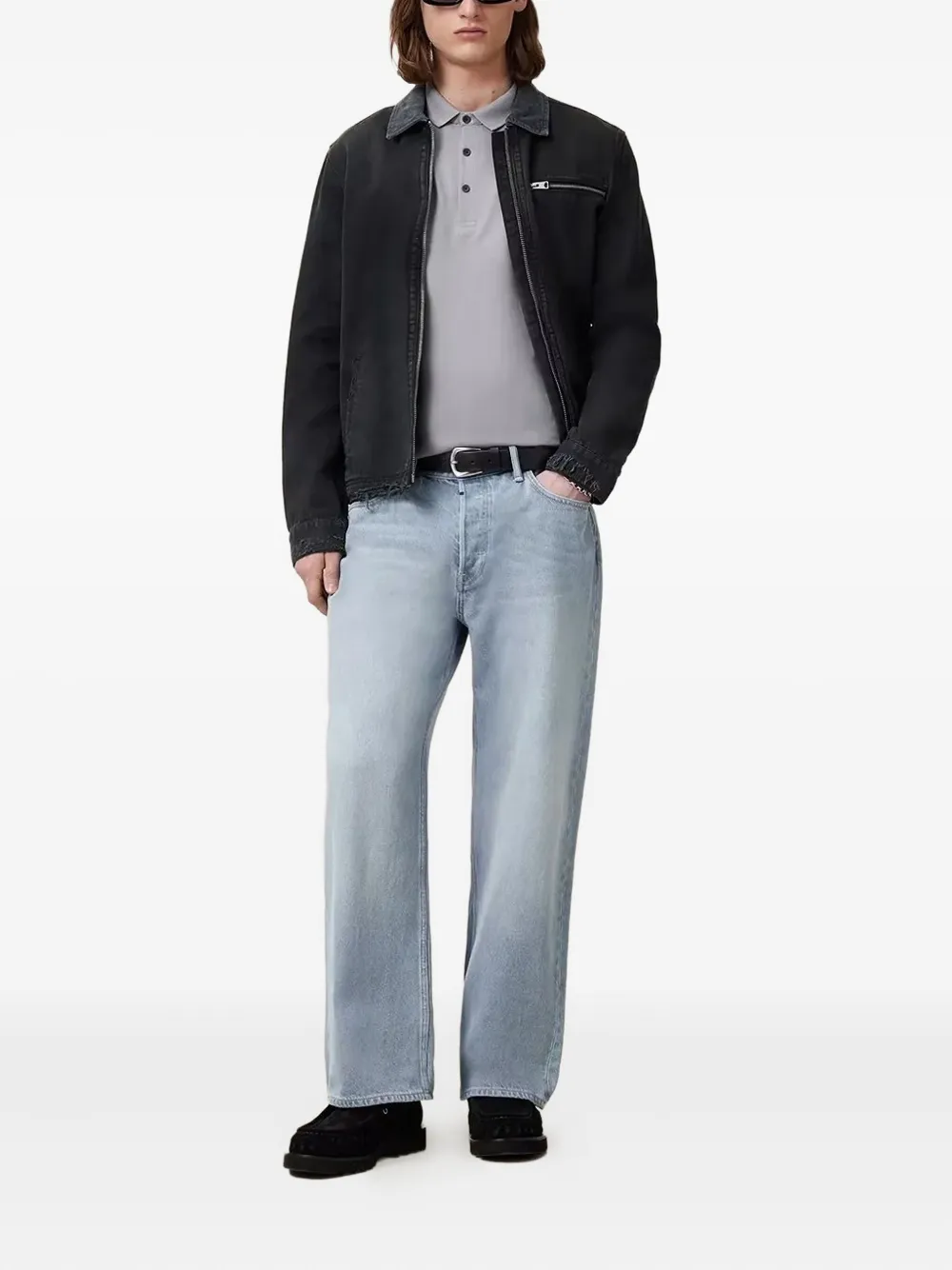 Рубашка поло с вышитым логотипом Allsaints, серый 13 938₽