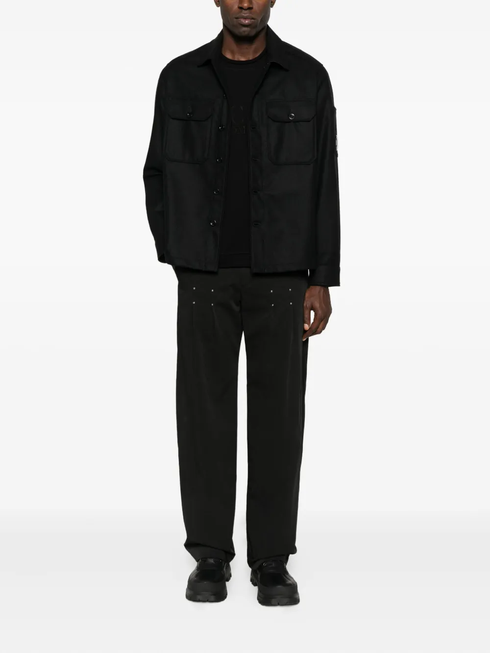 Черный шерстяной смесовый материал, застежка на пуговицы, накладные карманы с клапанами, длинные рукава. C.P. Company рекомендует снимать все съемные аксессуары перед стиркой.