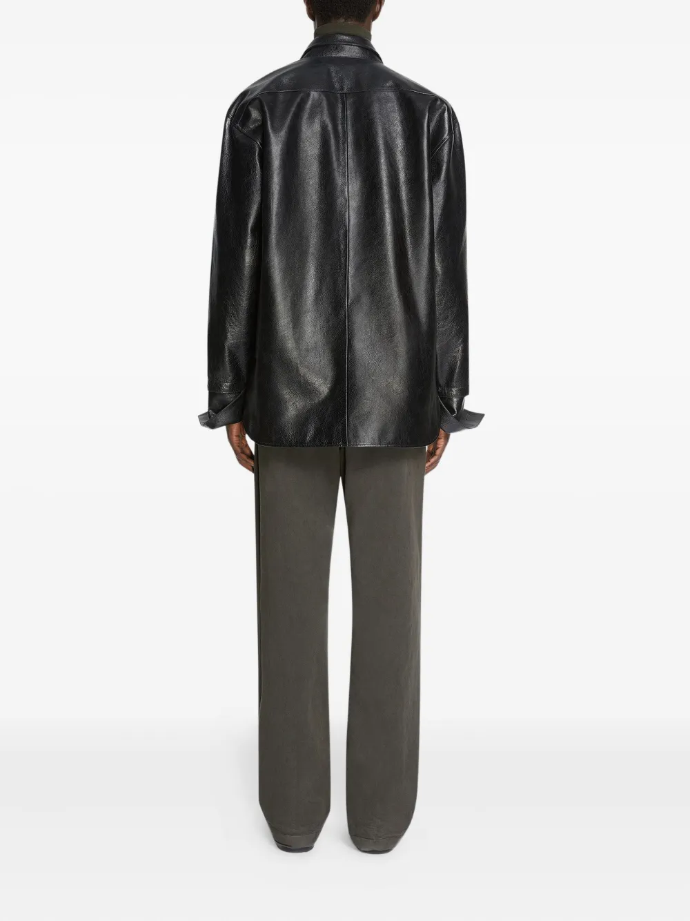 Кожаная рубашка Dries Van Noten, черный