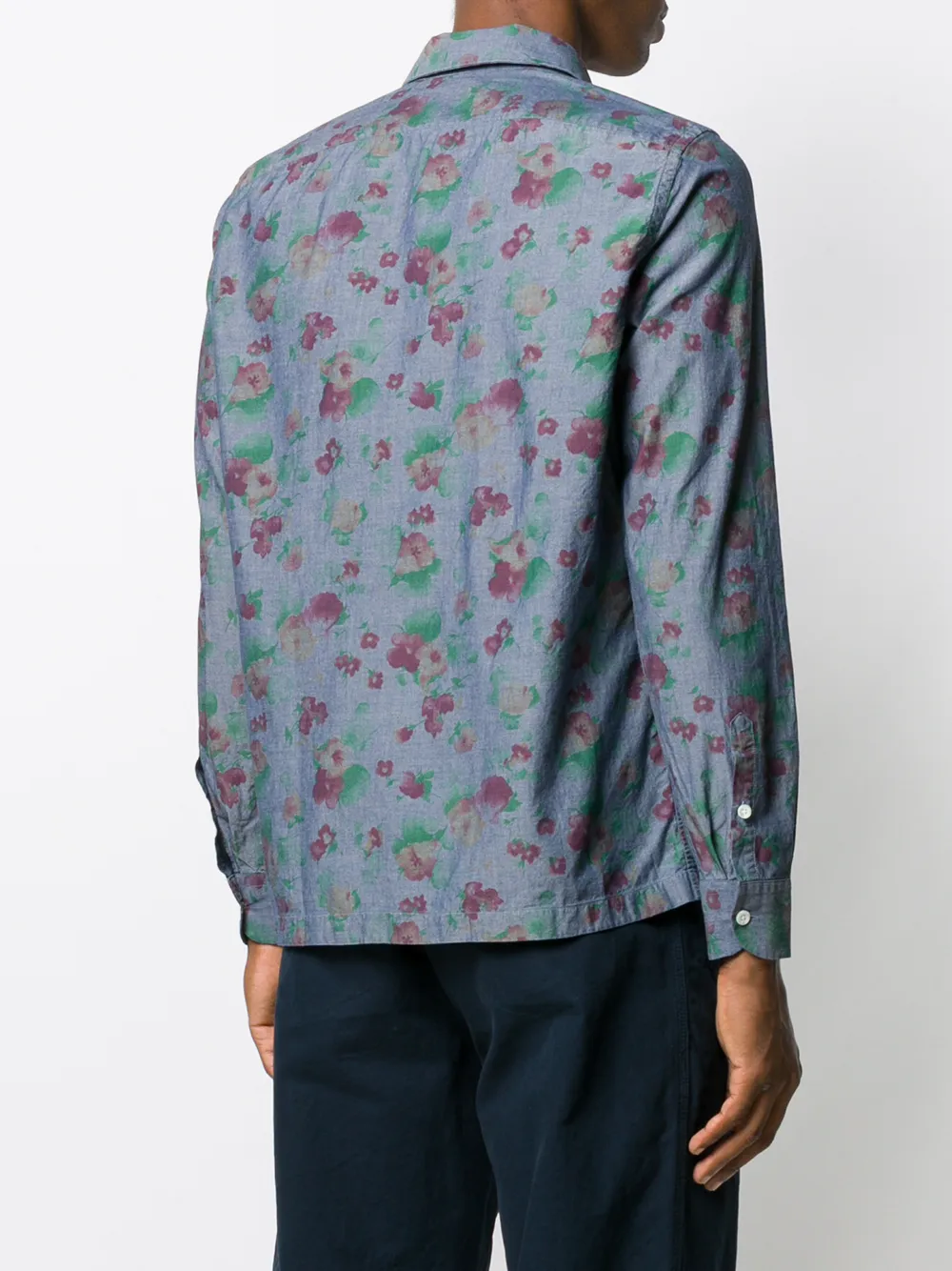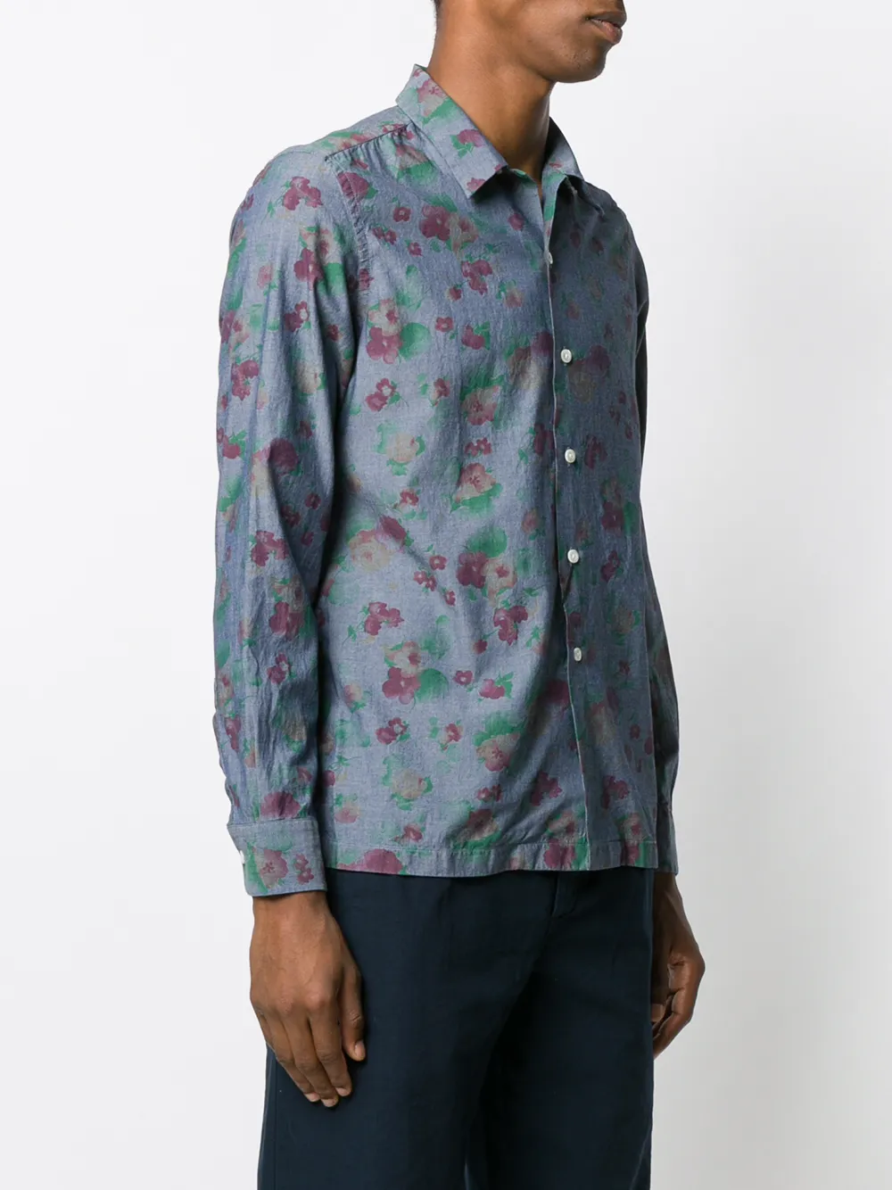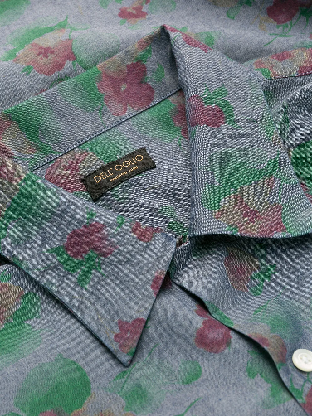 Рубашка с цветочным принтом от Dell'oglio. Заостренный воротник, застежка на пуговицах спереди, длинные рукава, манжеты на пуговицах и прямой подол. Цвет: синий.