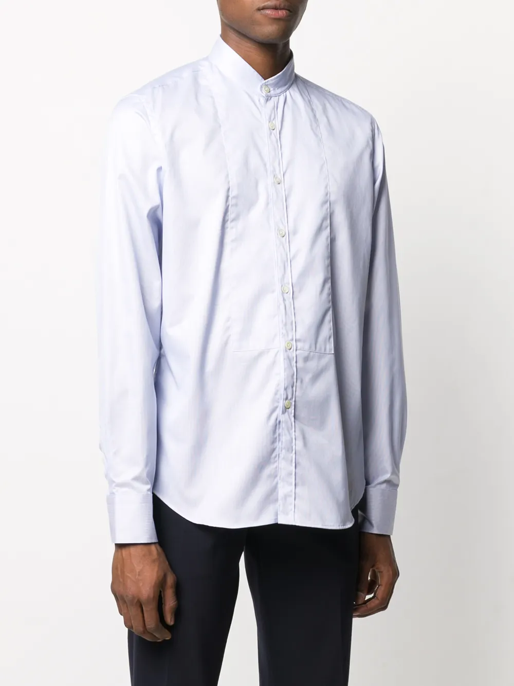 Рубашка с воротником-стойкой от Dell'oglio. Длинные рукава, манжеты на пуговицах, планка на пуговицах спереди и закругленный подол.