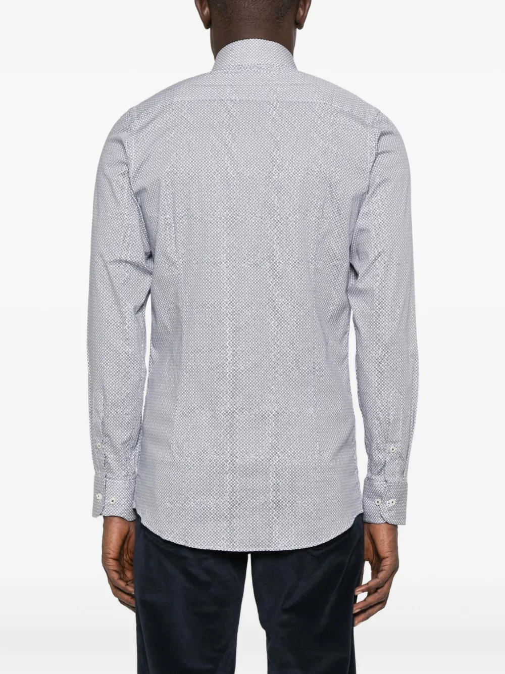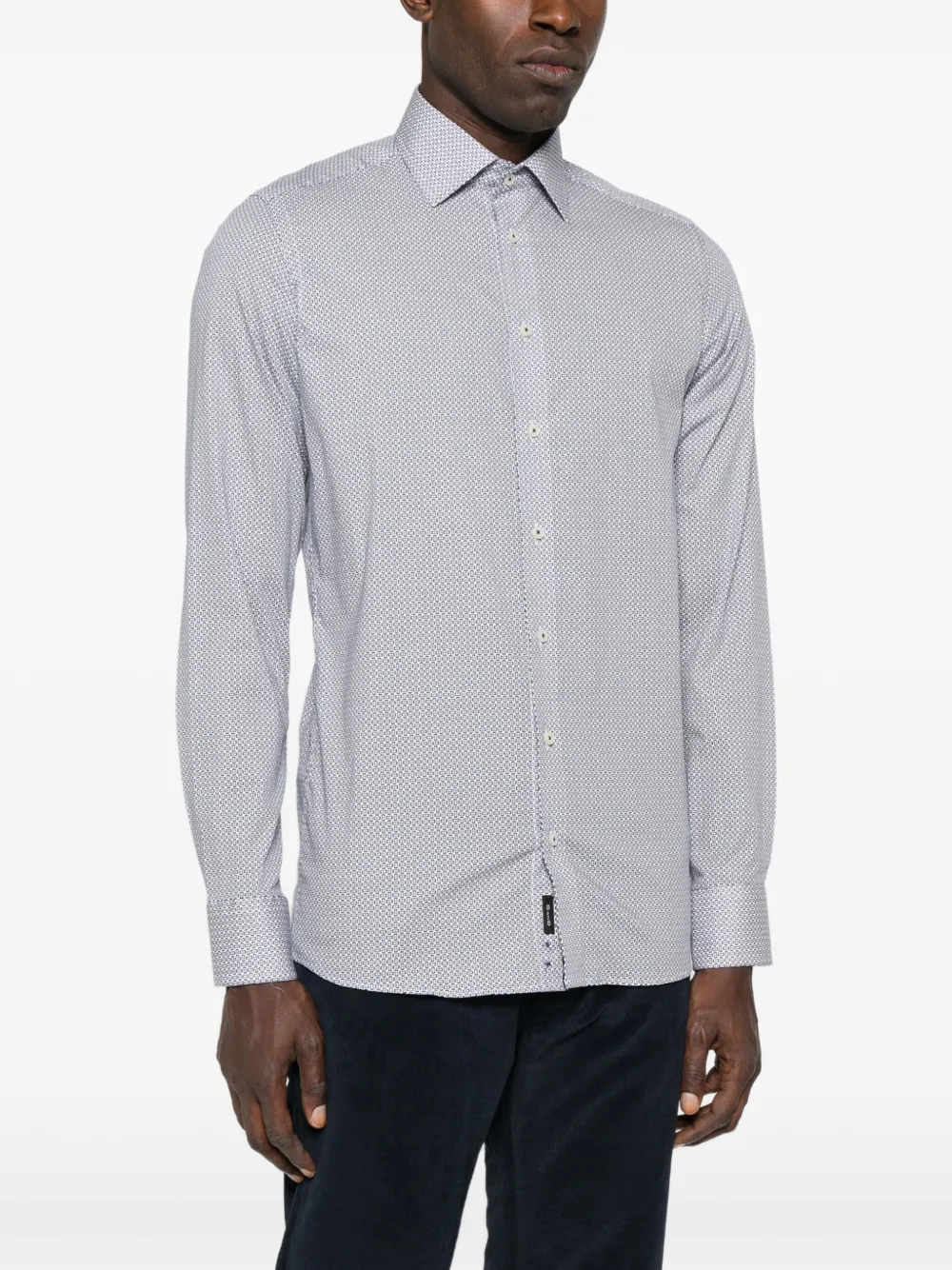 Светло-голубой геометрический принт длинные рукава застежка на пуговицы спереди классический воротник закругленный подол