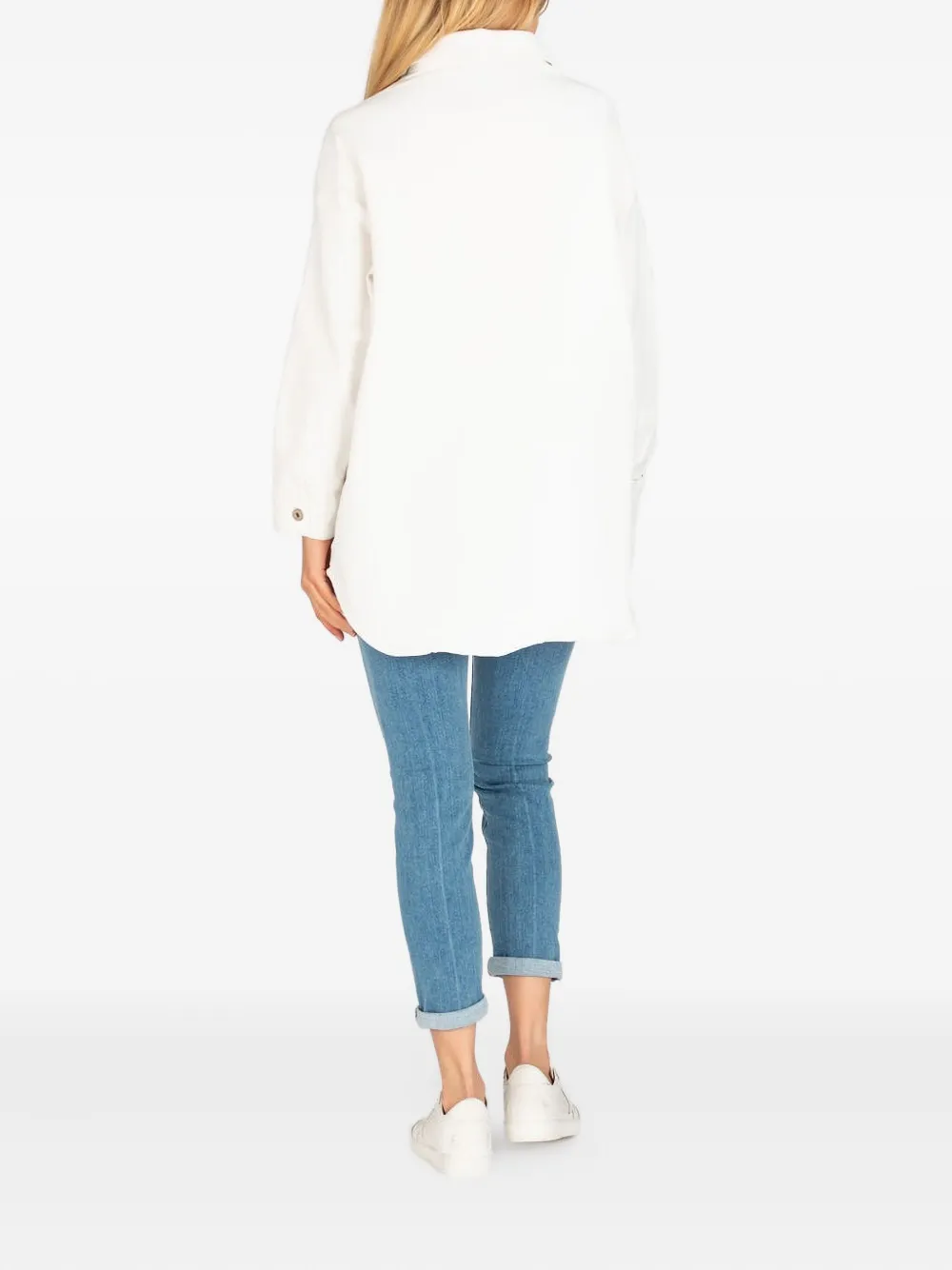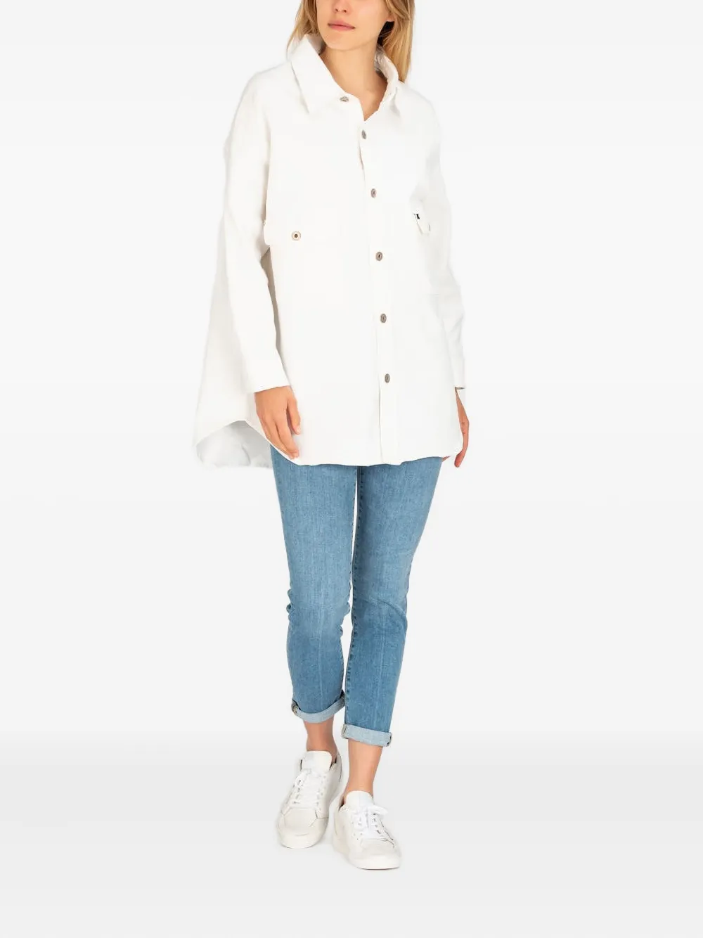 Светло-голубые джинсы со средней посадкой, пятью карманами и застежкой на пуговицы