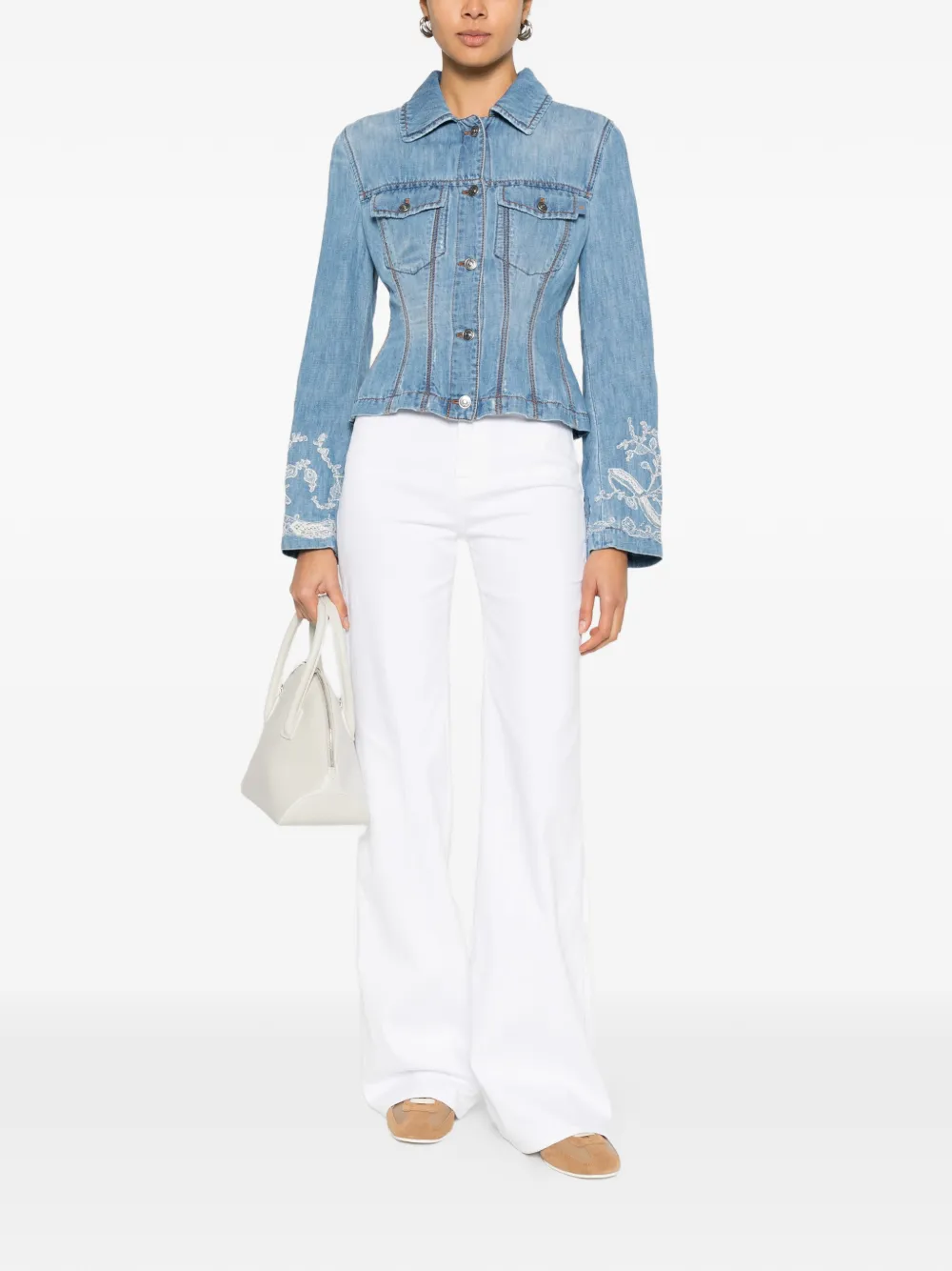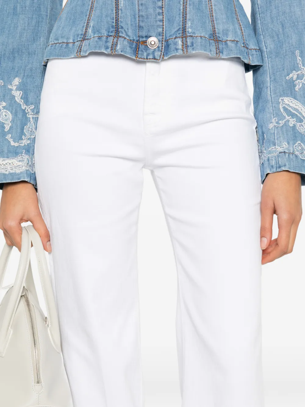 Белые джинсы с широкой штаниной, текстурой денима, шлевками для ремня и пятью карманами