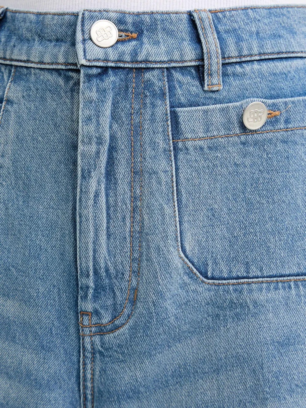Светло-голубые широкие брюки с передними карманами и накладными карманами сзади