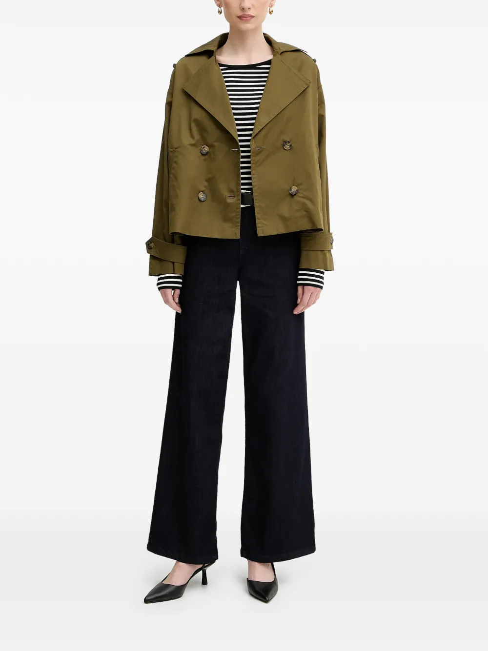 Темно-синие широкие брюки с пятью карманами, нашивкой-логотипом и шлевками для пояса