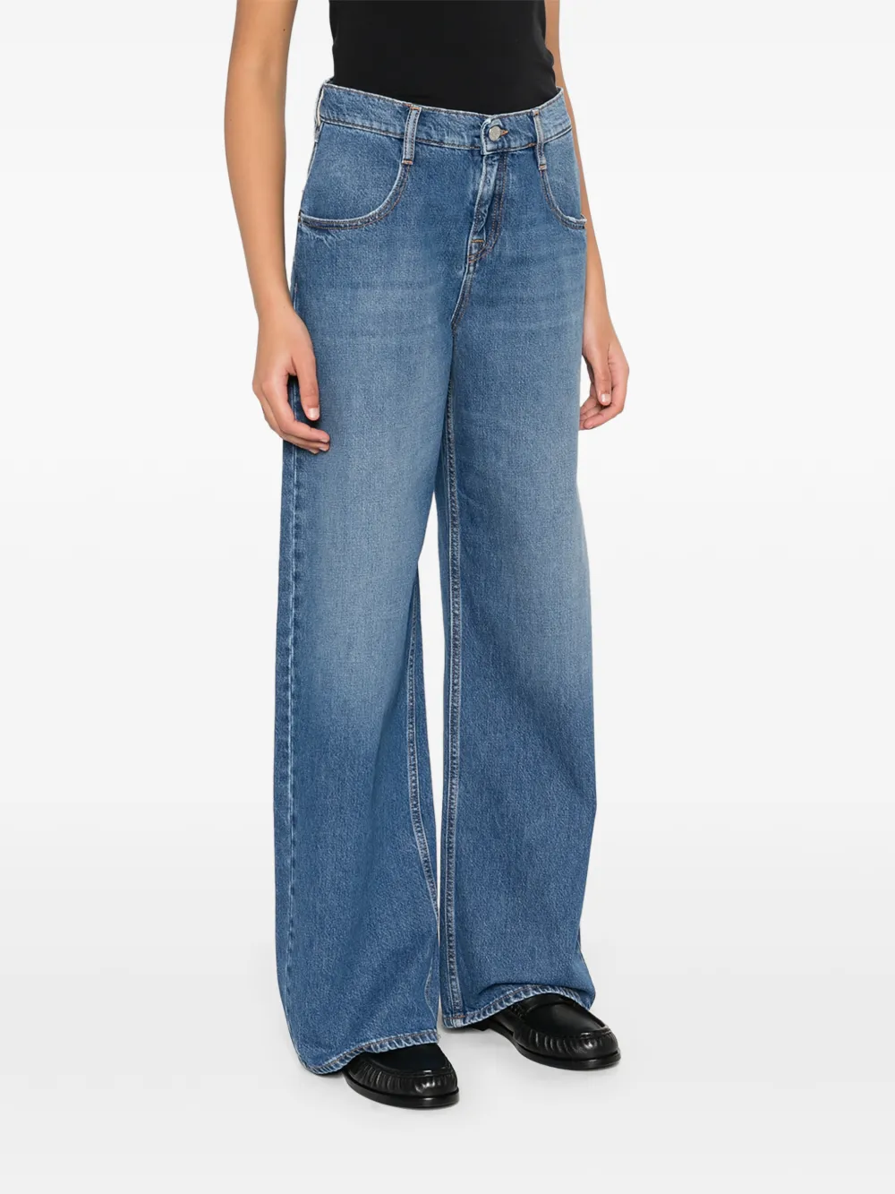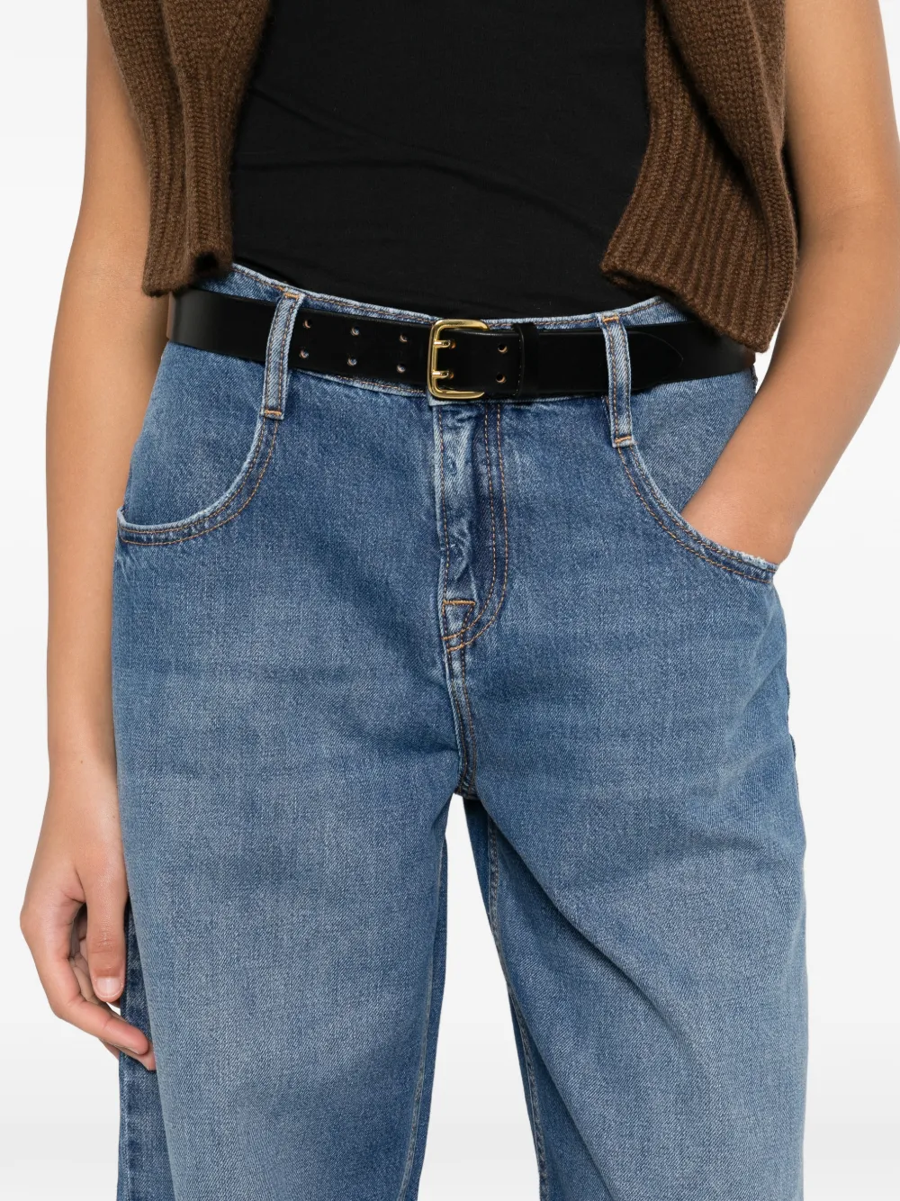Синие карманы, шлевки для ремня, однотонная строчка
