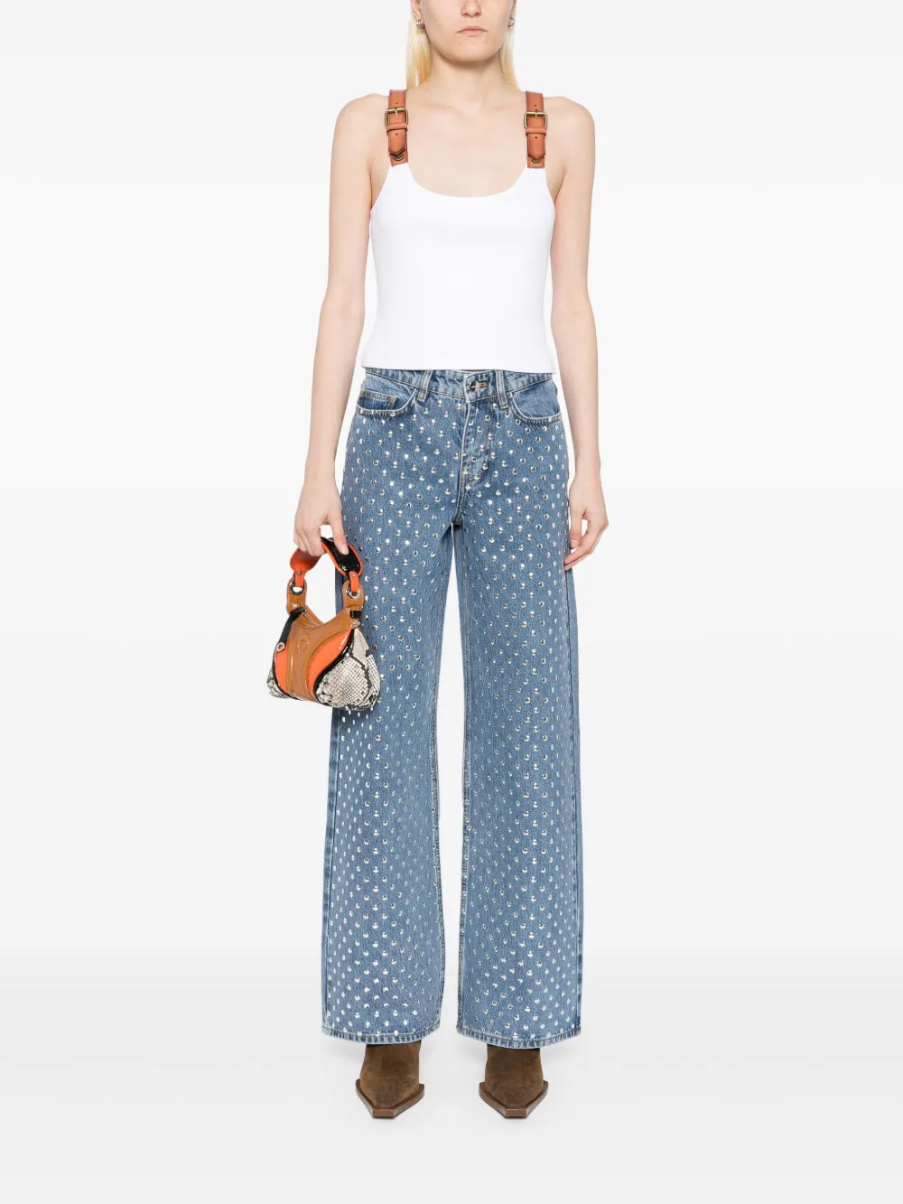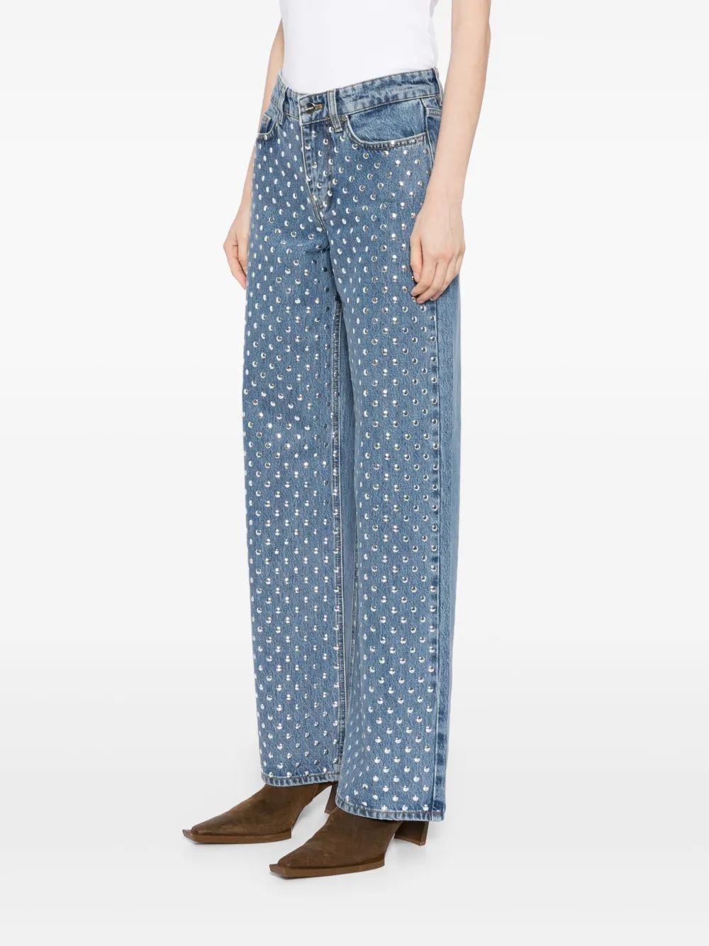 - широкий крой: джинсы плотно сидят на талии, но не облегают ноги