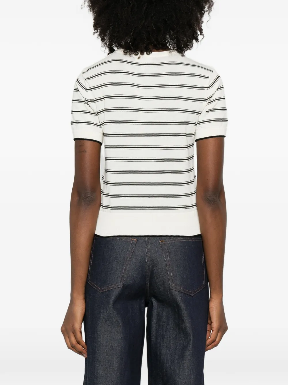 Белый в полоску, короткие рукава, круглый вырез, с логотипом