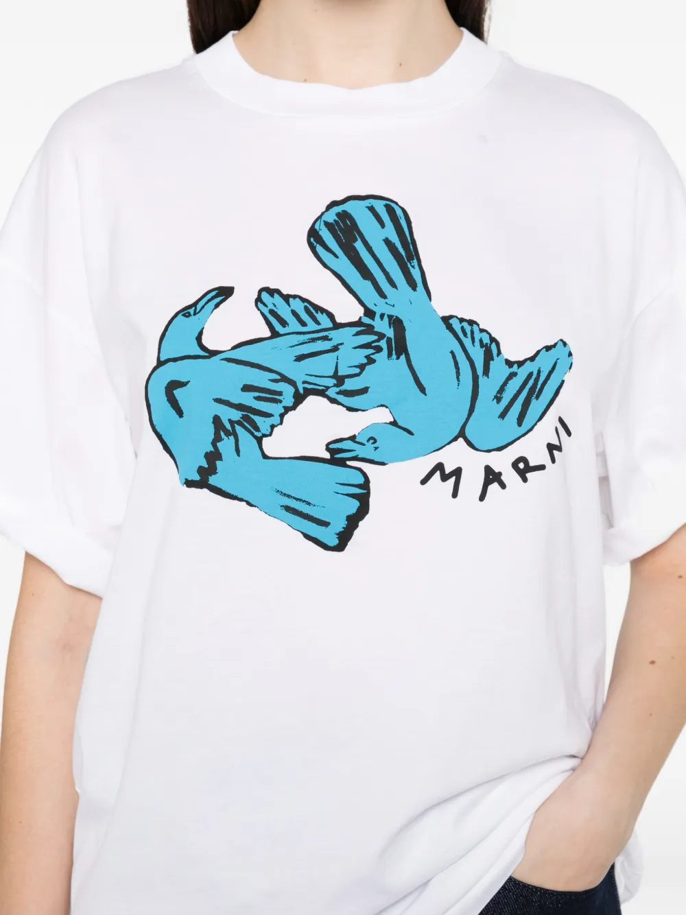 Футболка с принтом в виде птицы Marni, белый 45 421₽