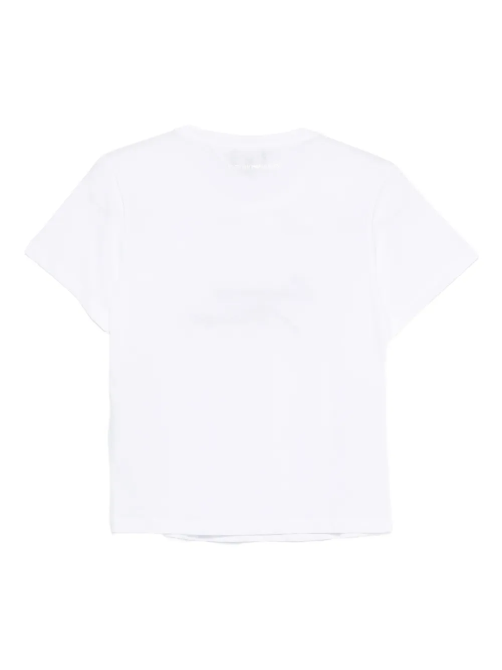Белый топ с пайетками, круглым вырезом и короткими рукавами