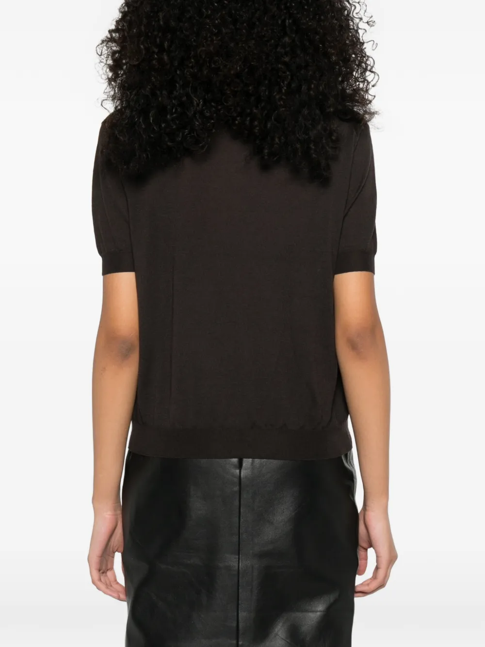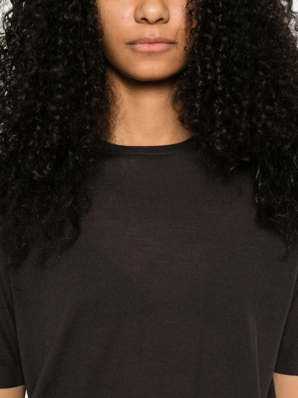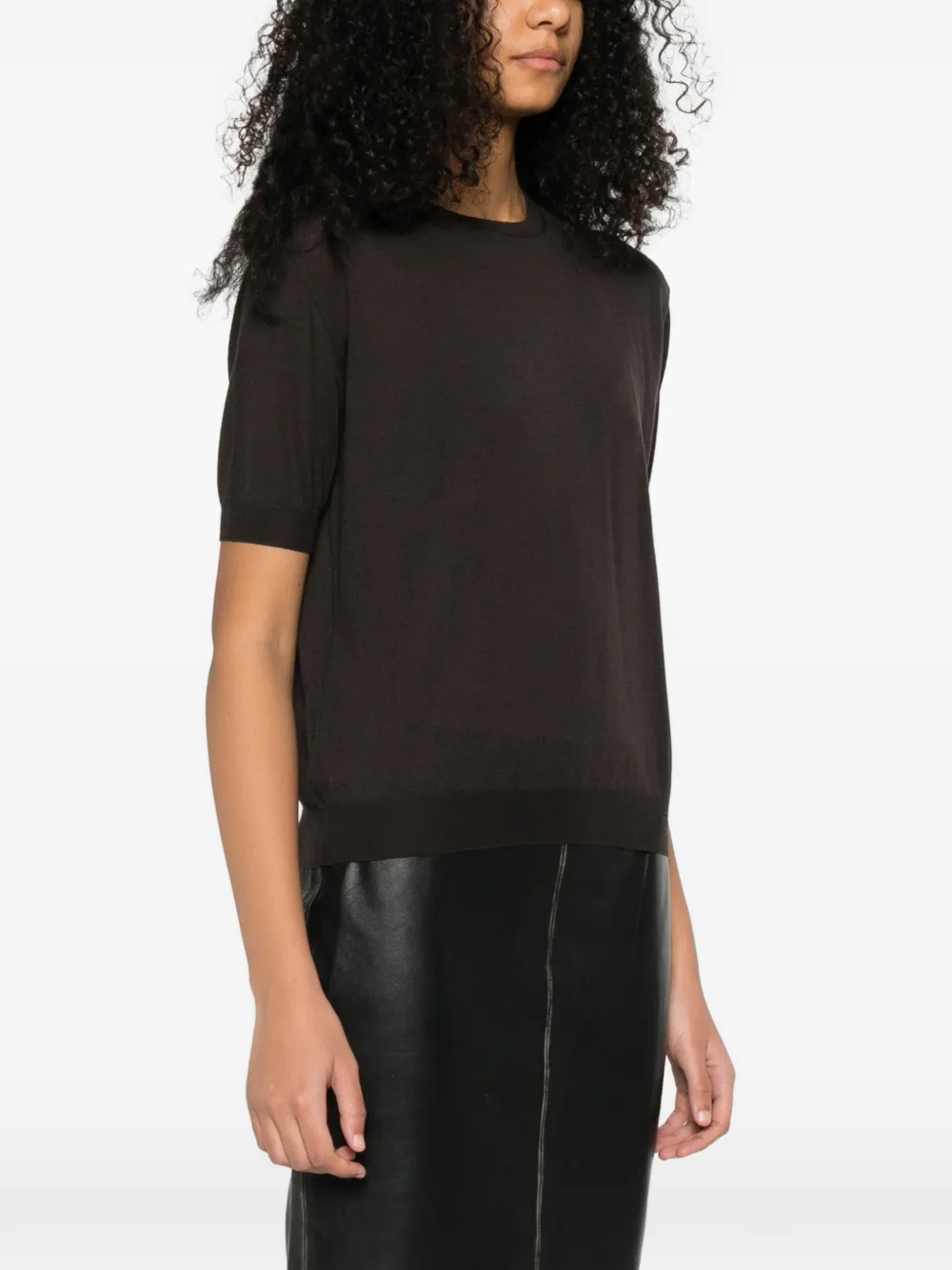 Коричневая футболка с круглым вырезом, короткими рукавами и прямым подолом