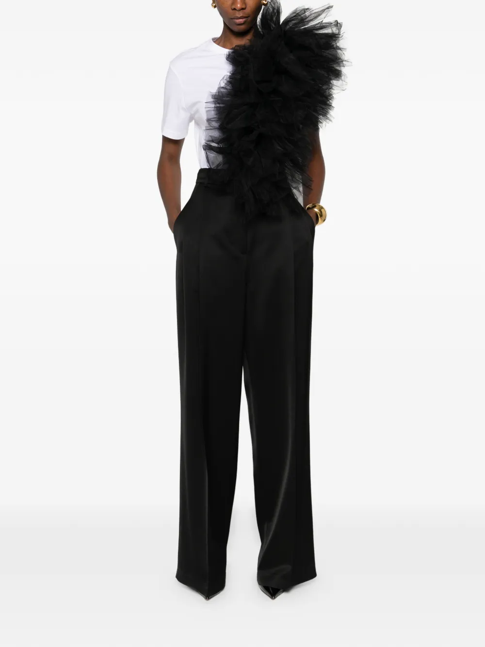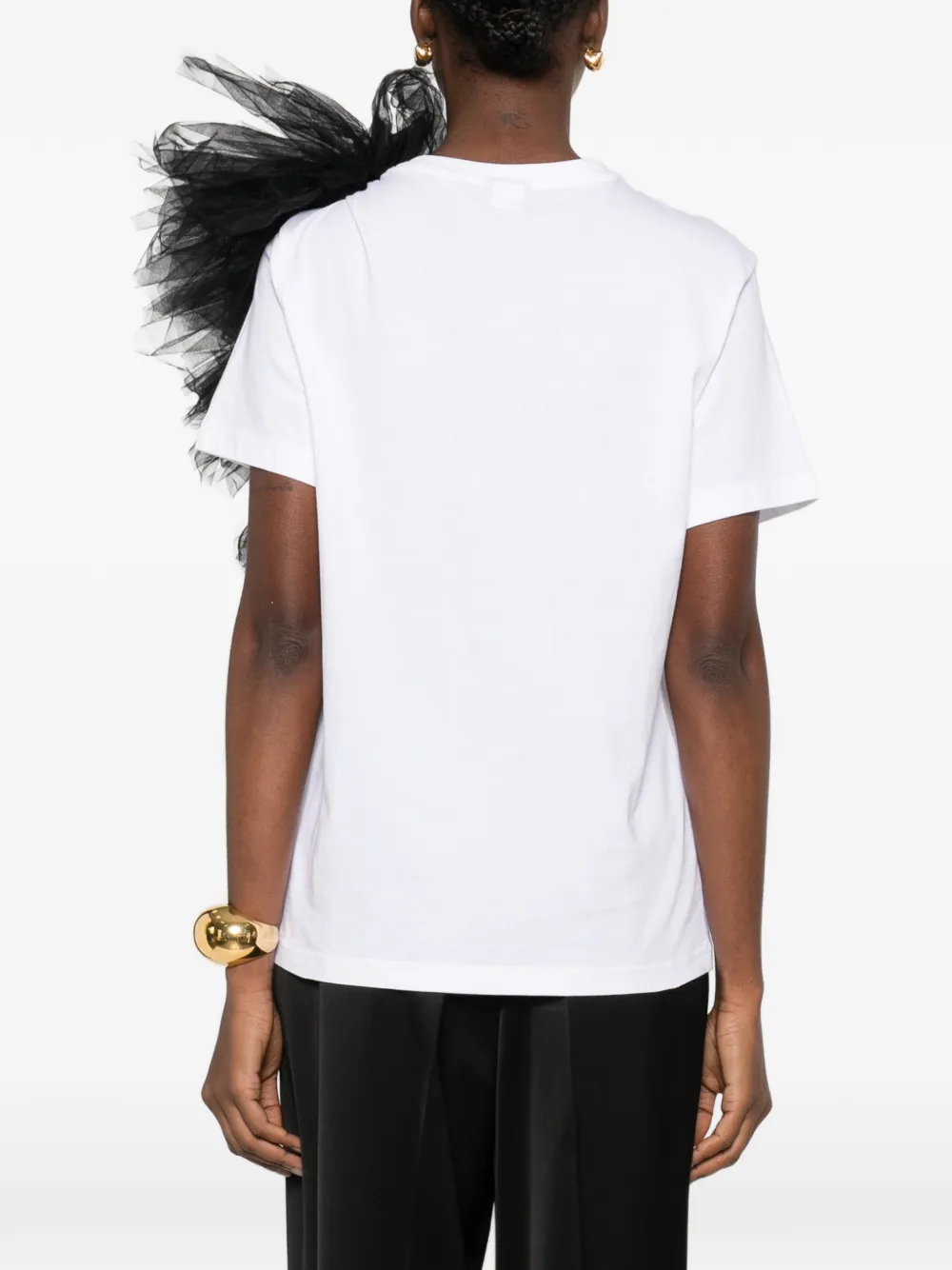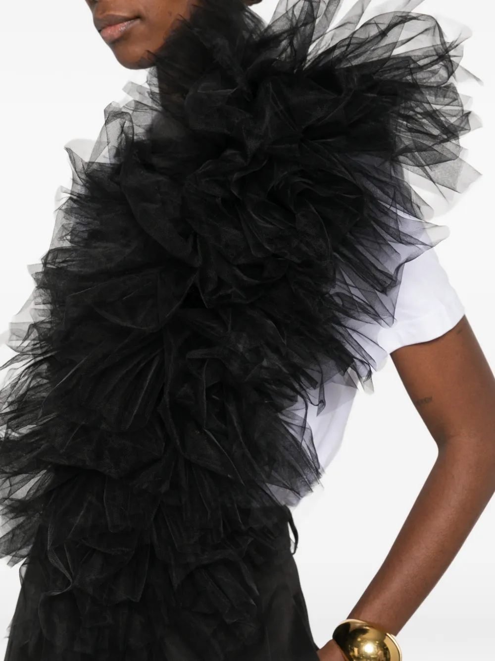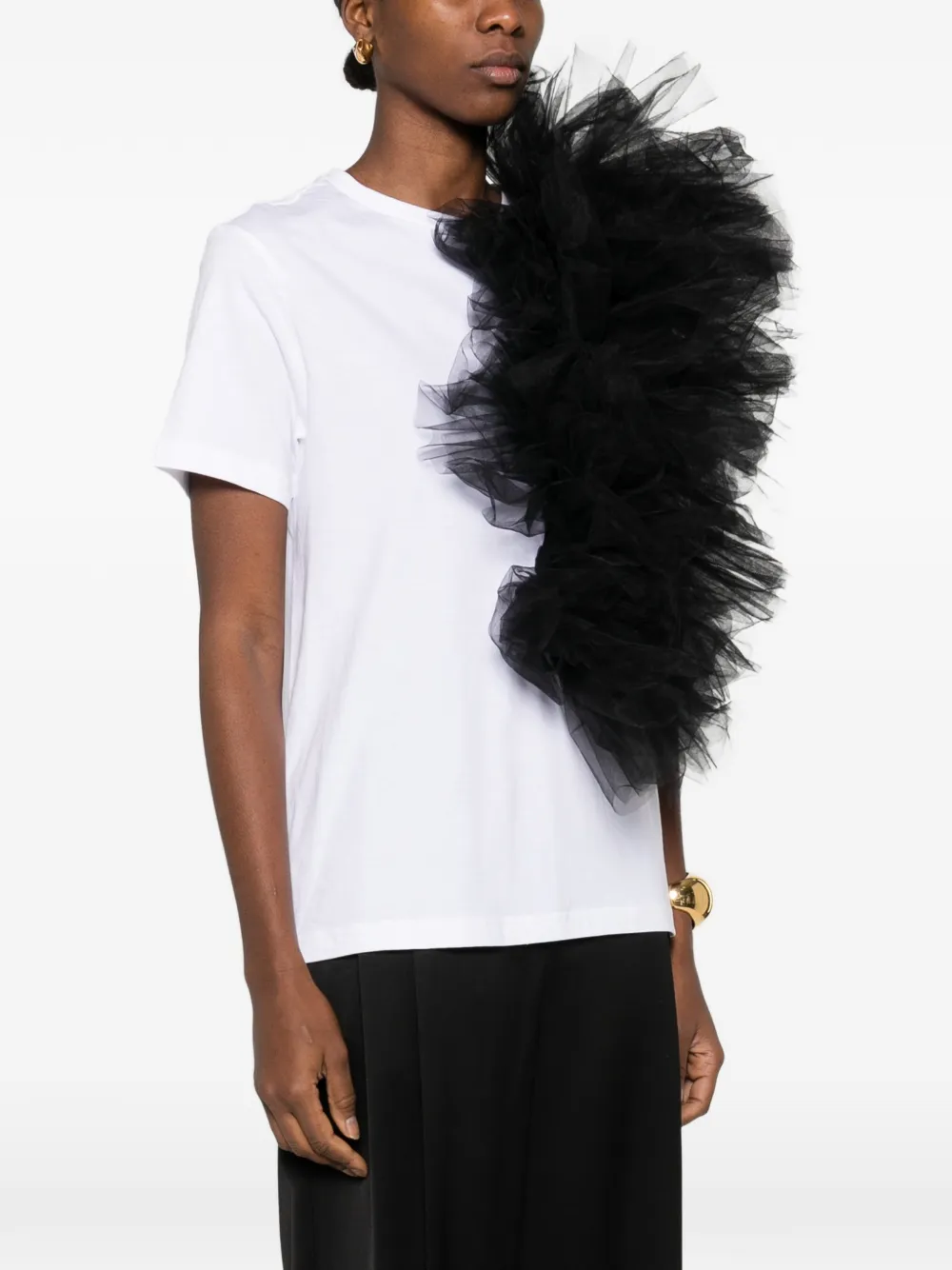 Белый с черным, оборки, круглый вырез, короткие рукава