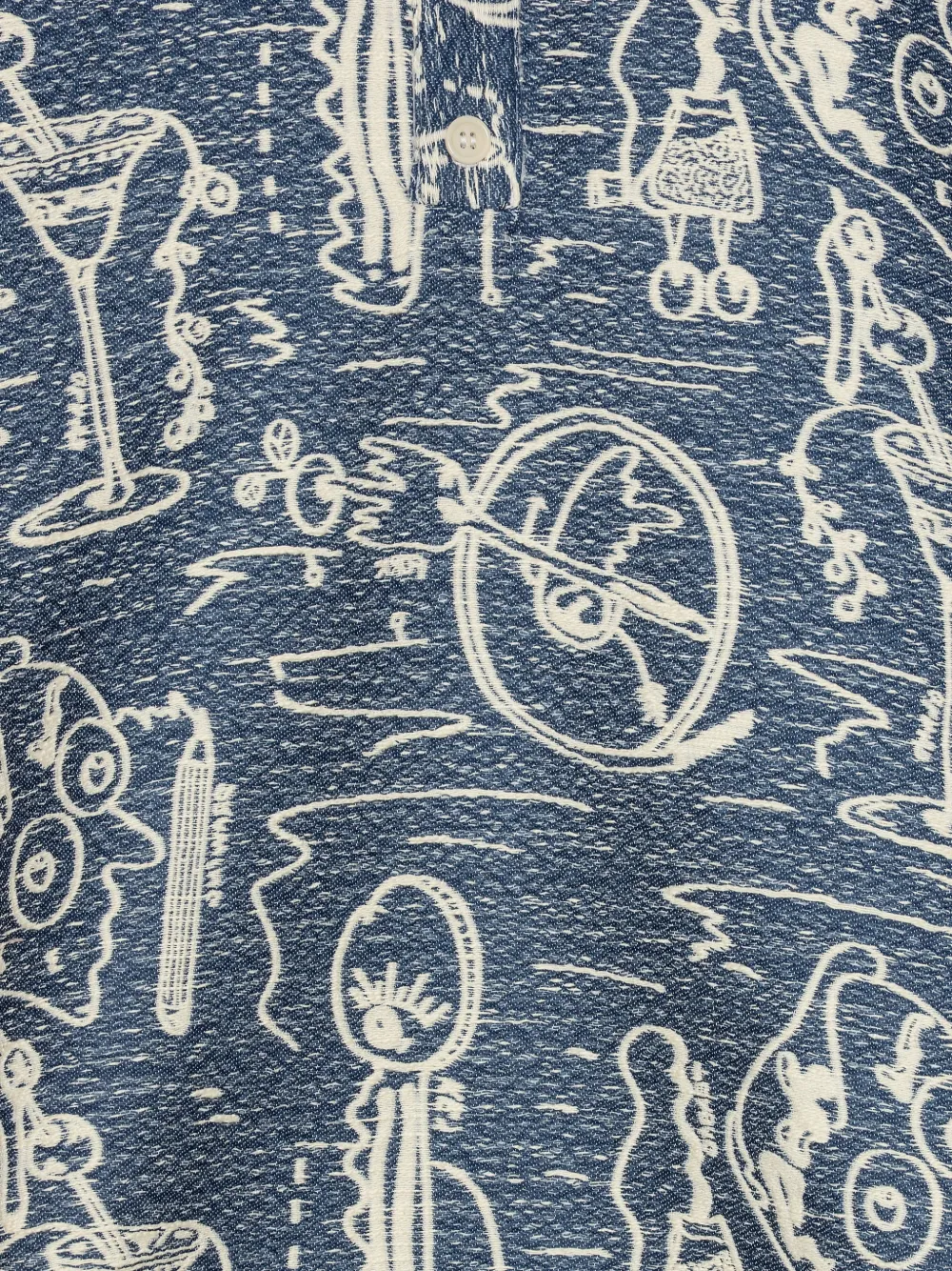 Синяя рубашка с графическим принтом, короткими рукавами, застежкой на пуговицы и стойкой-воротником