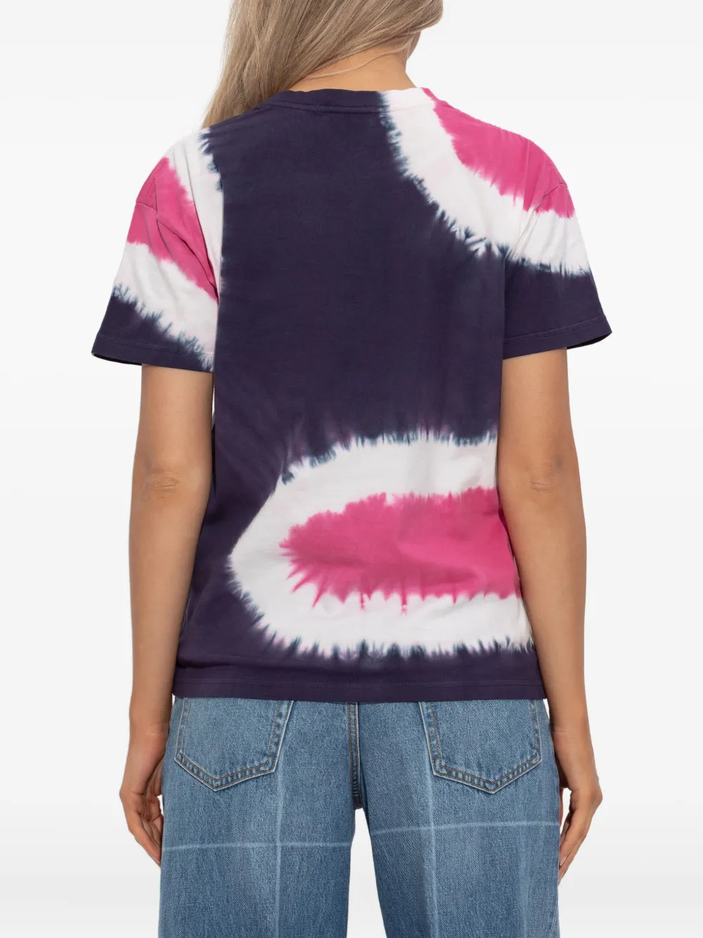 Синий/разноцветный хлопок узор тай-дай короткие рукава круглый вырез прямой край графический принт на груди