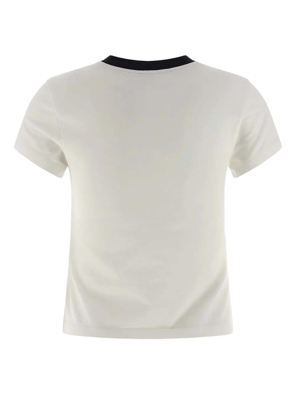 Белая футболка с контрастной отделкой горловины, вышитым логотипом спереди и короткими рукавами