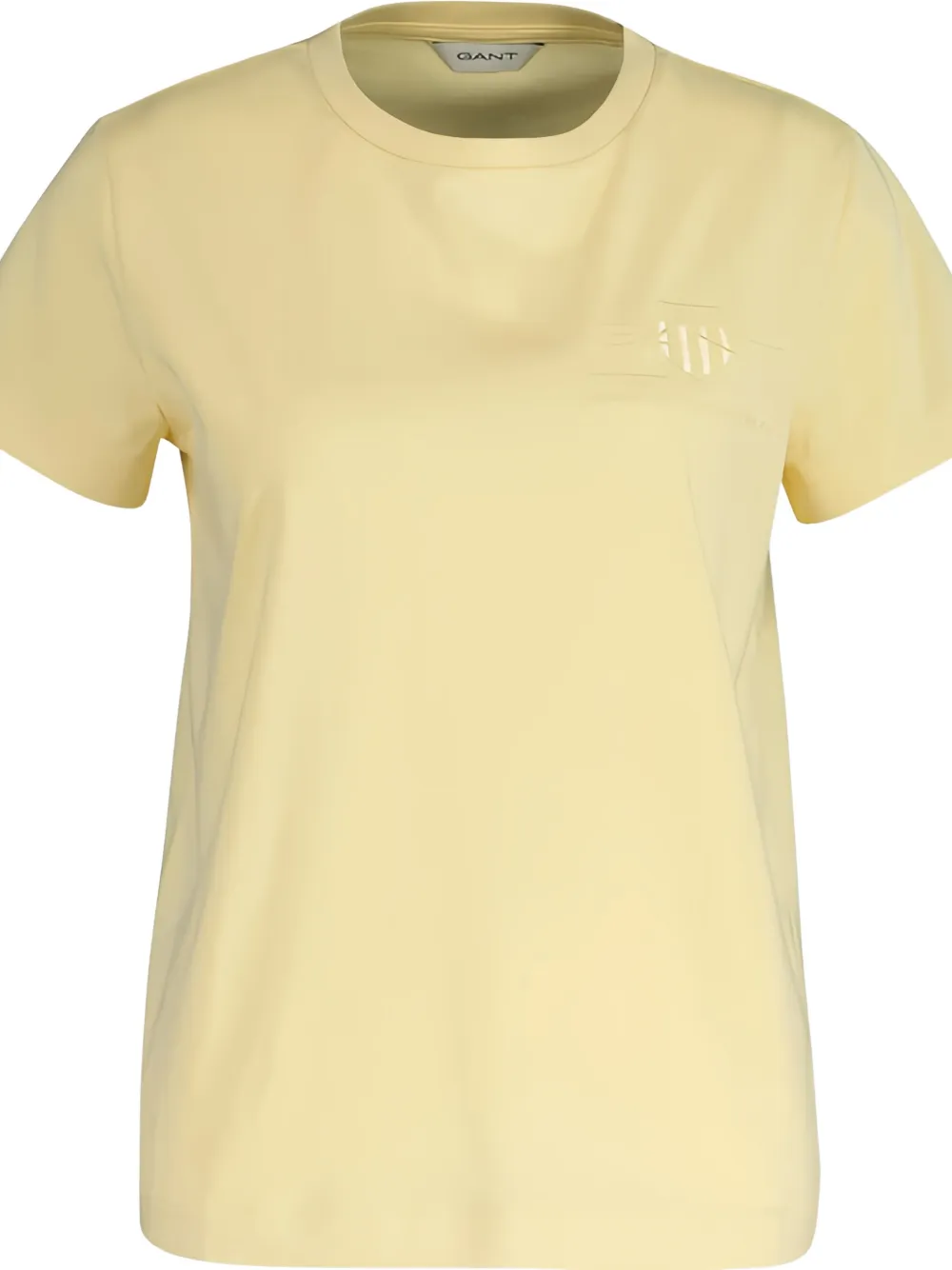Желтая футболка с короткими рукавами, круглым вырезом и однотонным логотипом