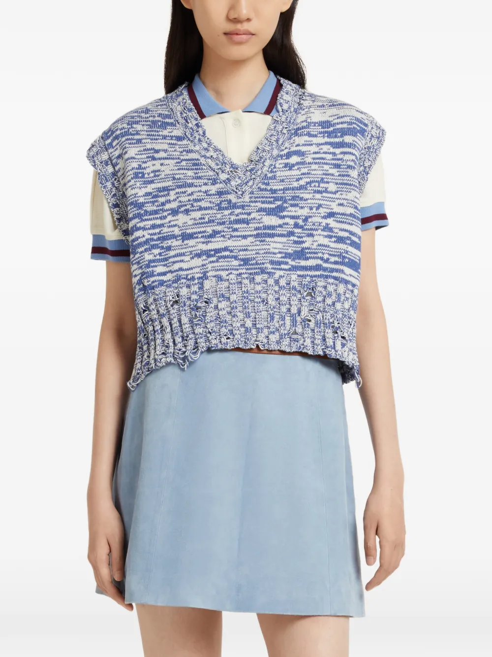 Футболка в рубчик с V-образным вырезом Marni, синий 67 560₽