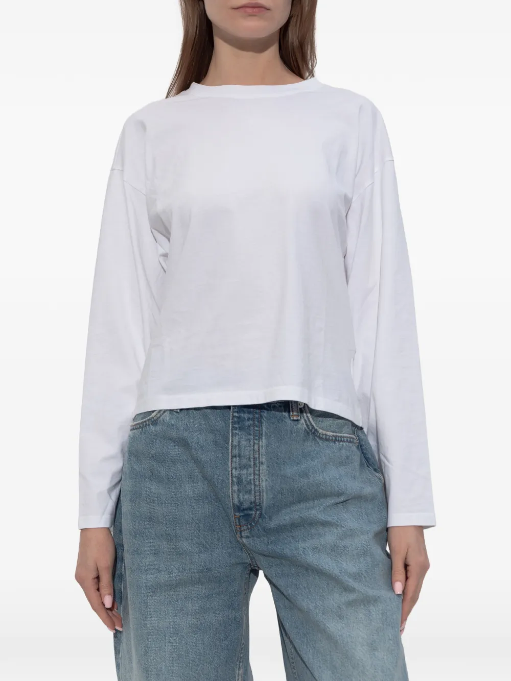 Белый лонгслив с круглым вырезом