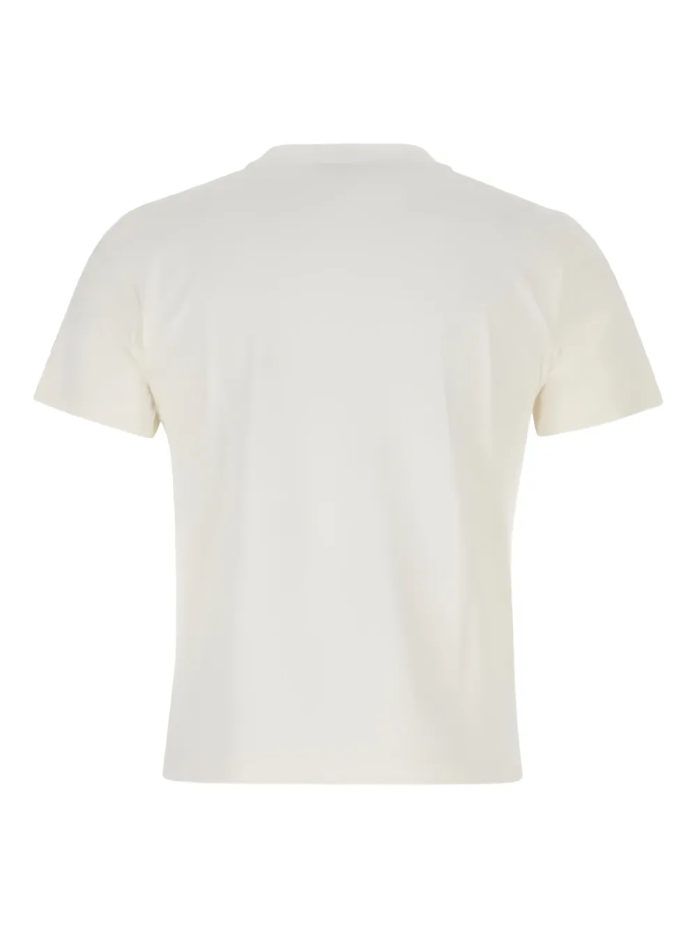 Белая футболка с логотипом, короткими рукавами и круглым вырезом