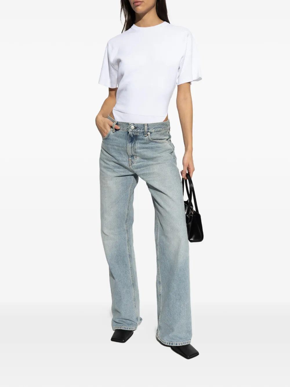 Белая футболка с круглым вырезом и короткими рукавами