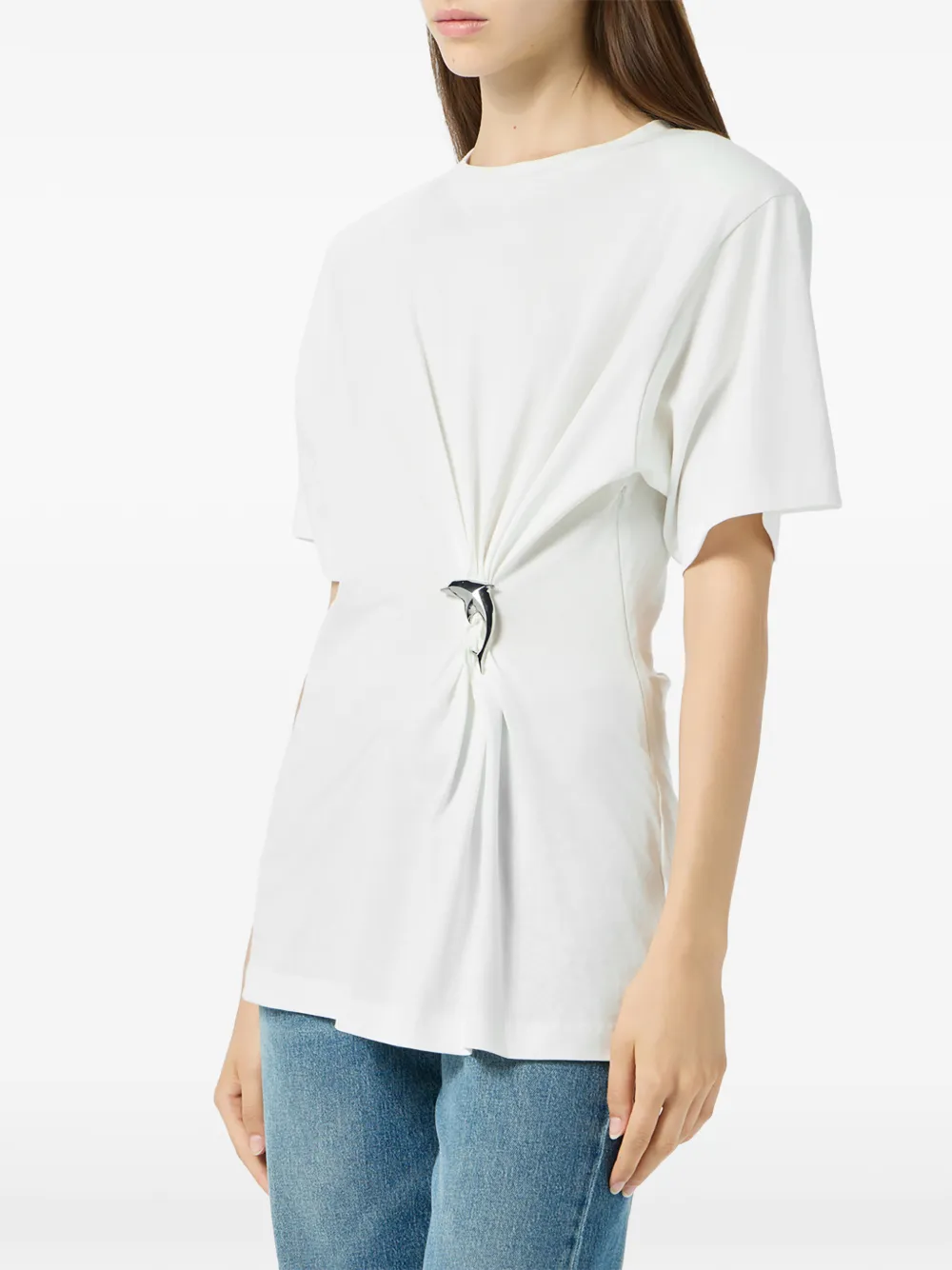 Белая футболка из чистого хлопка с узлом, аппликацией, короткими рукавами и круглым вырезом