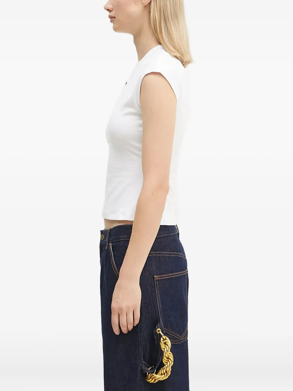 Белый с логотипом, круглый вырез, короткие рукава, прямой подол