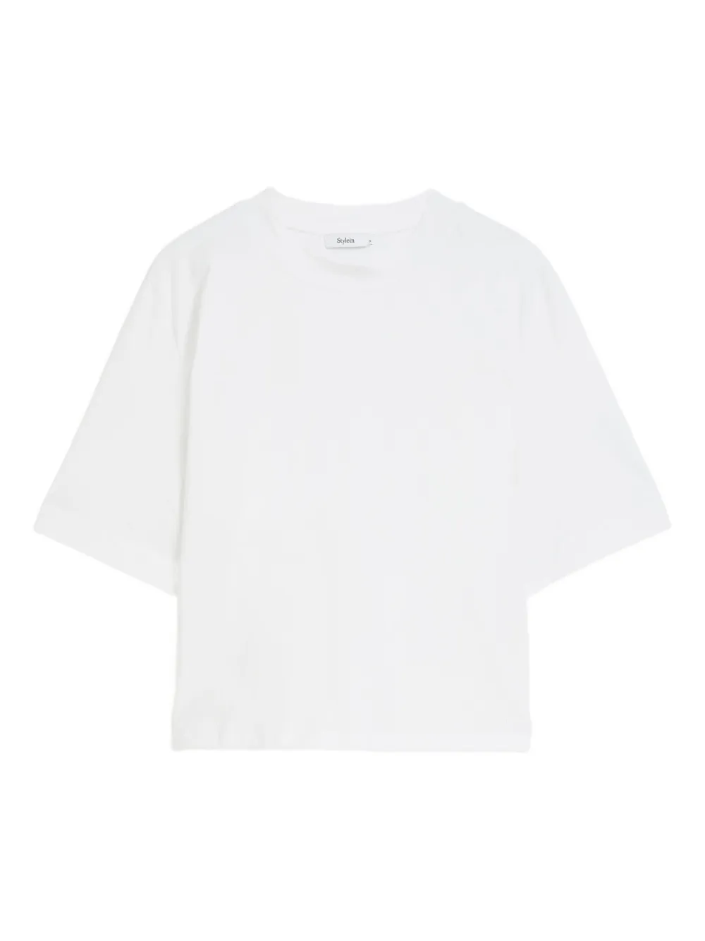 Белая футболка свободного кроя с круглым вырезом и прямым подолом из органического хлопка