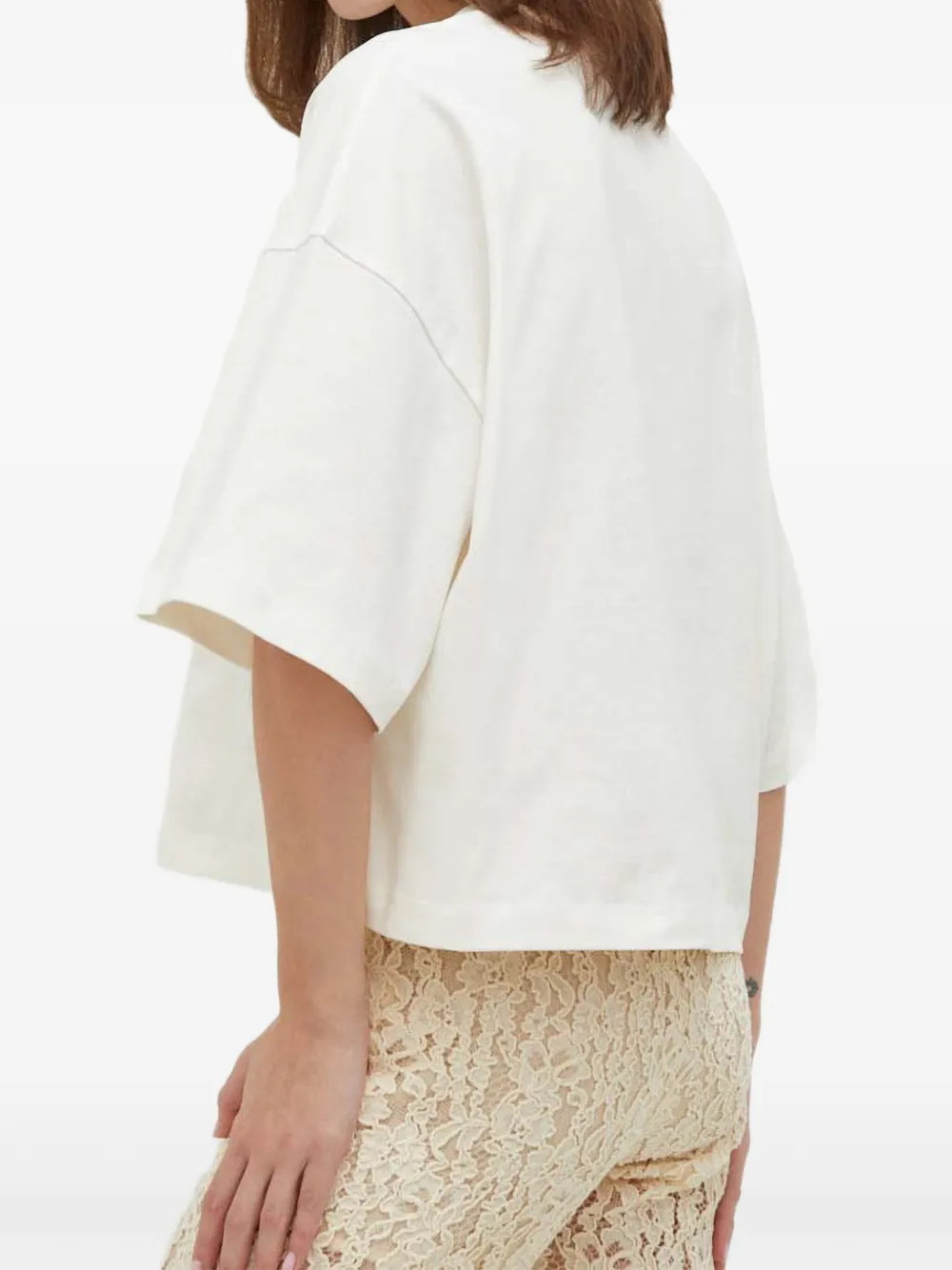 Белая футболка с графическим принтом, короткими рукавами и круглым вырезом