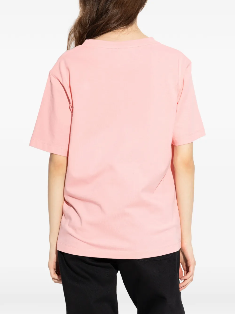 Светло-розовый логотип спереди, круглый вырез, короткие рукава