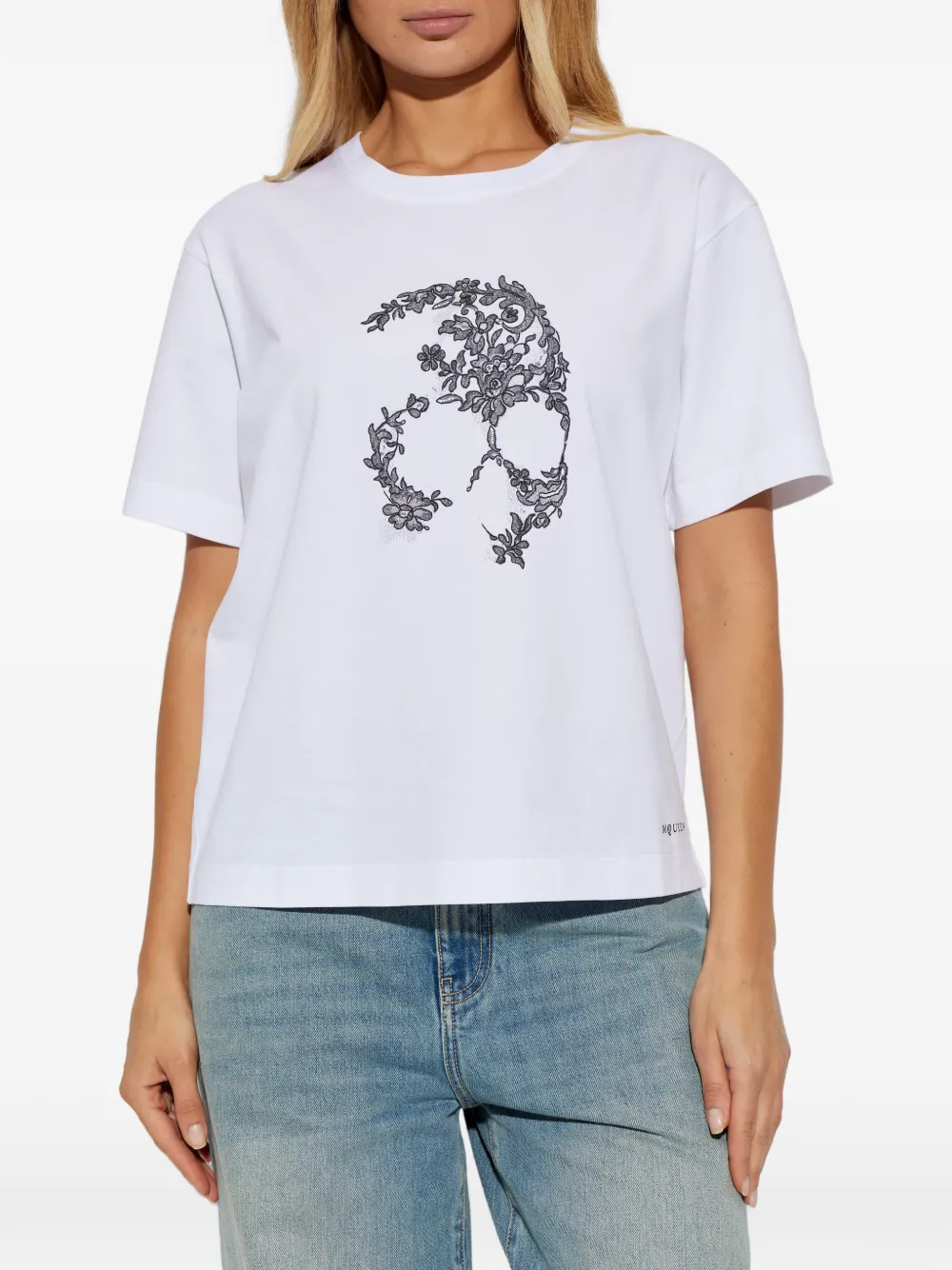 Футболка с кружевным черепом Alexander Mcqueen, белый