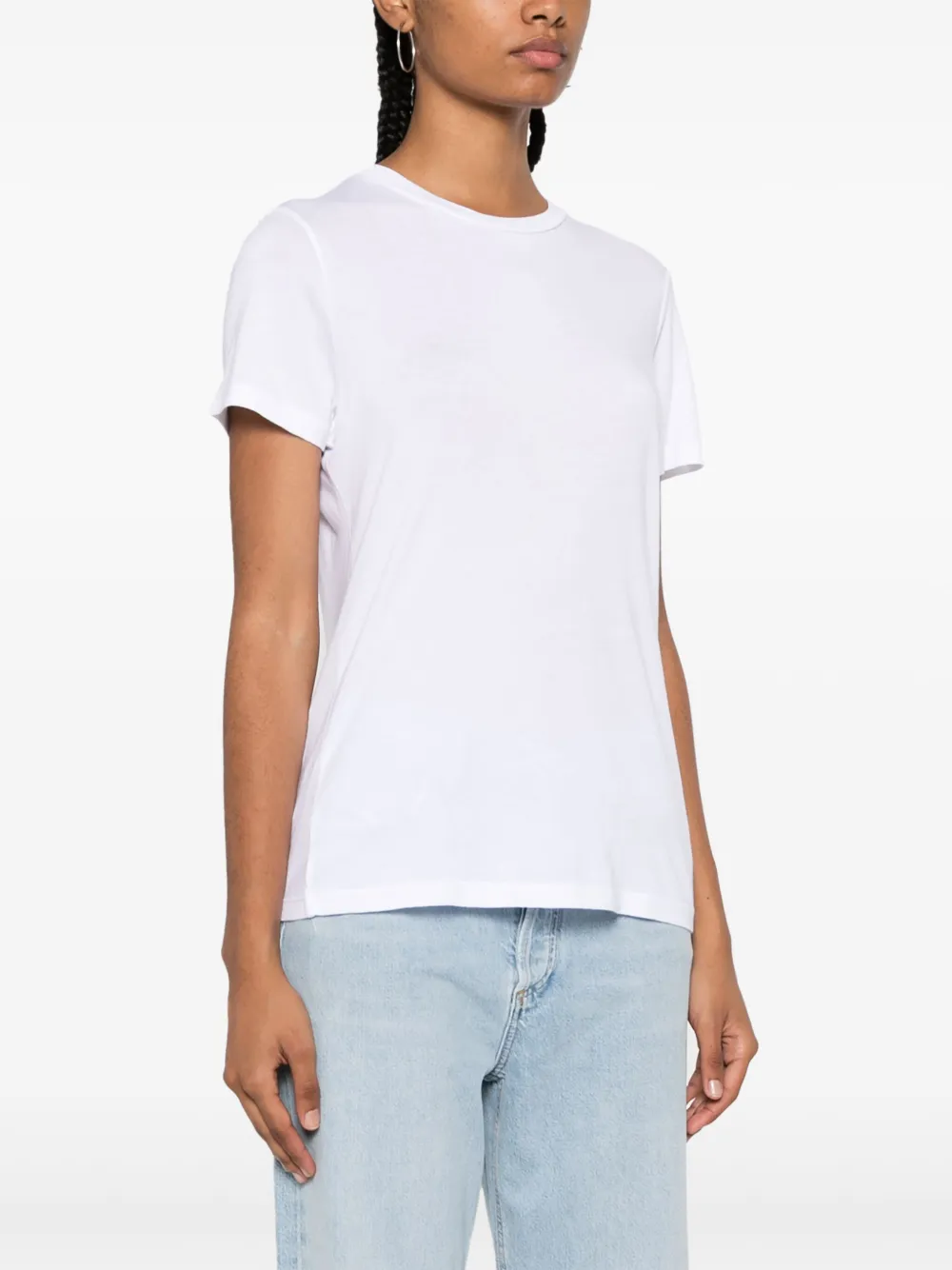 Белый, хлопок Supima, смесовый модал, круглый вырез, короткие рукава и прямой подол. Этот товар как минимум на 50% состоит из материалов, которые признаны более безопасными для окружающей среды, и/или произведены с использованием методов, которые помогают сократить потребление воды и химических веществ. Узнать больше о том, какие товары получают отметку «Ответственный выбор», можно из материала «Как мы оцениваем экологичность и этичность».