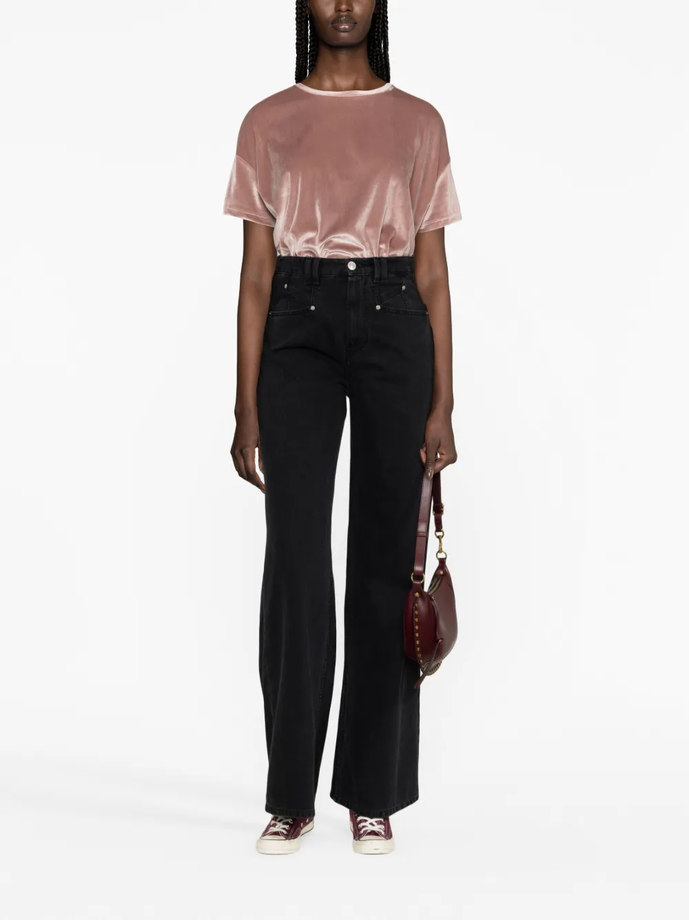 Расцветка Blush Pink, смесовый хлопок, бархат, круглый вырез, приспущенные плечи, короткие рукава и прямой подол.