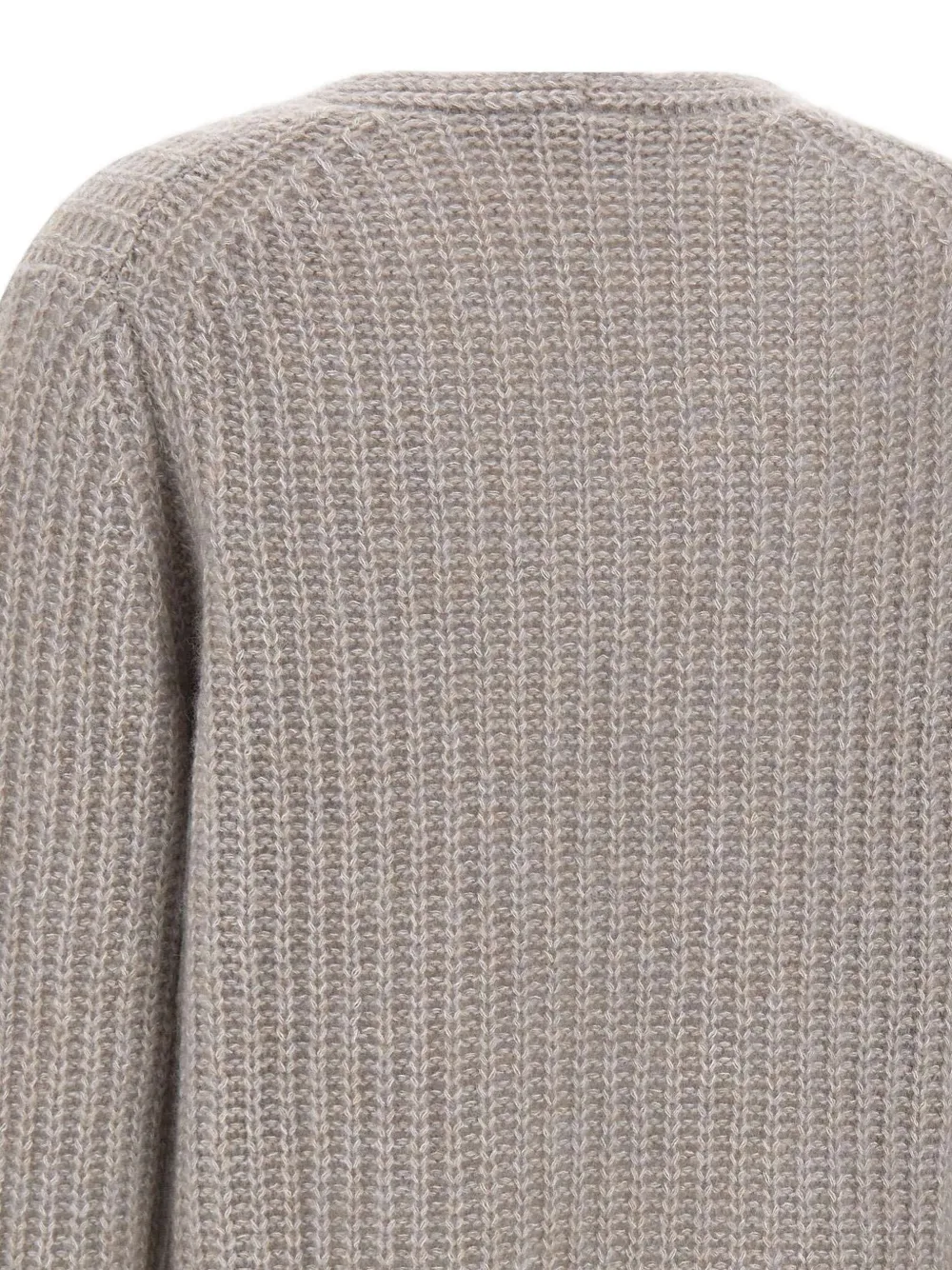 Жемчужно-серый фактурный трикотажный джемпер с V-образным вырезом и длинными рукавами