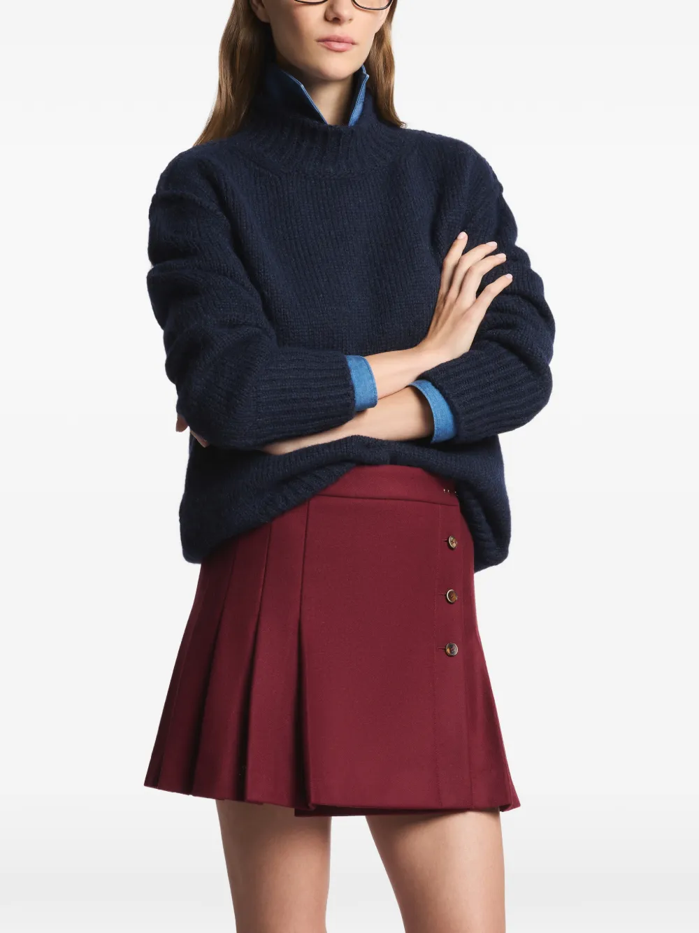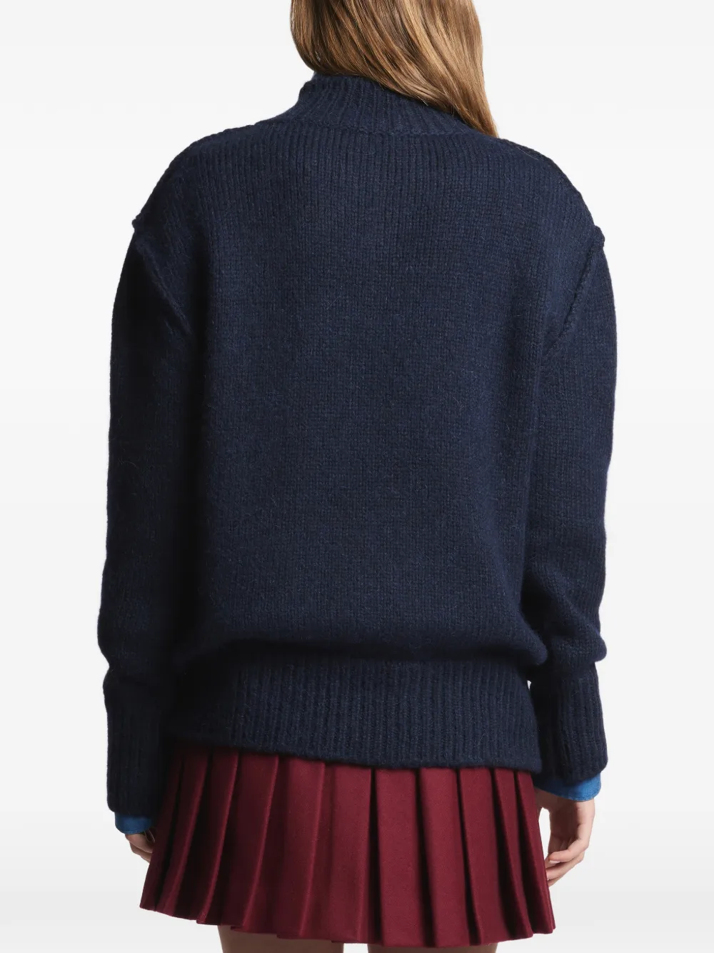 Темно-синий лонгслив с воротником-стойкой и длинными рукавами