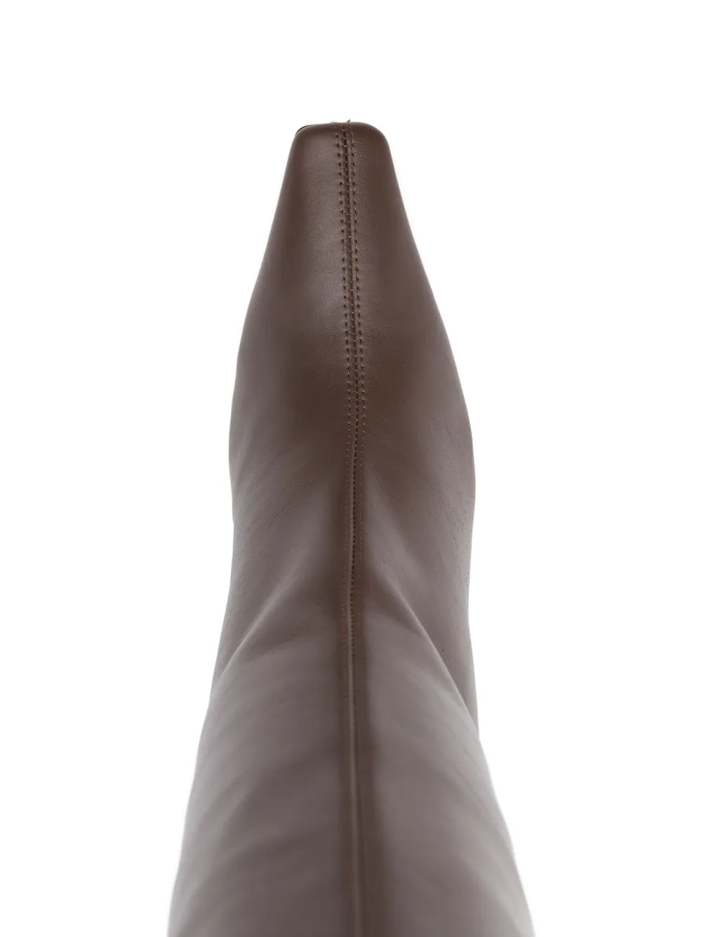 Коричневые ботфорты на высоком каблуке с заостренным квадратным носком