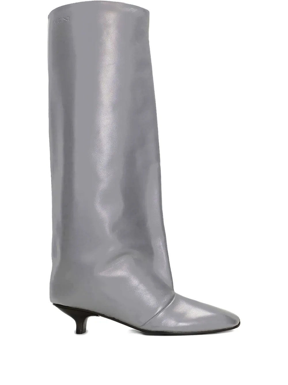 Серые сапоги до колена с миндалевидным носком, на низком каблуке-рюмочке, без застежек, в стиле "pull-on"