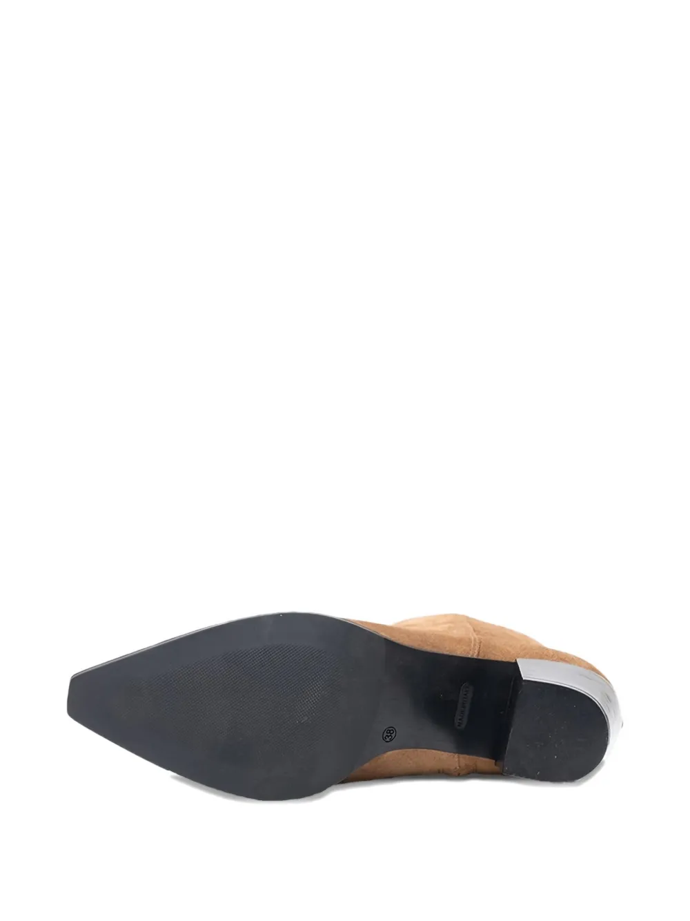 Светло-коричневые туфли на блочном каблуке с заостренным носком и застежкой-молнией.