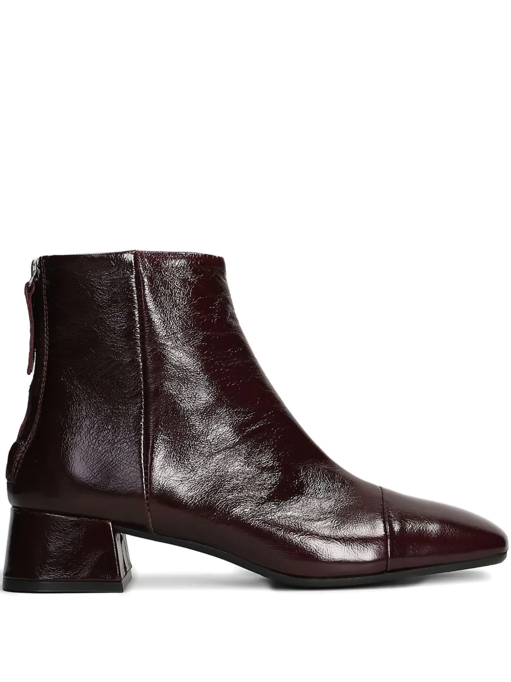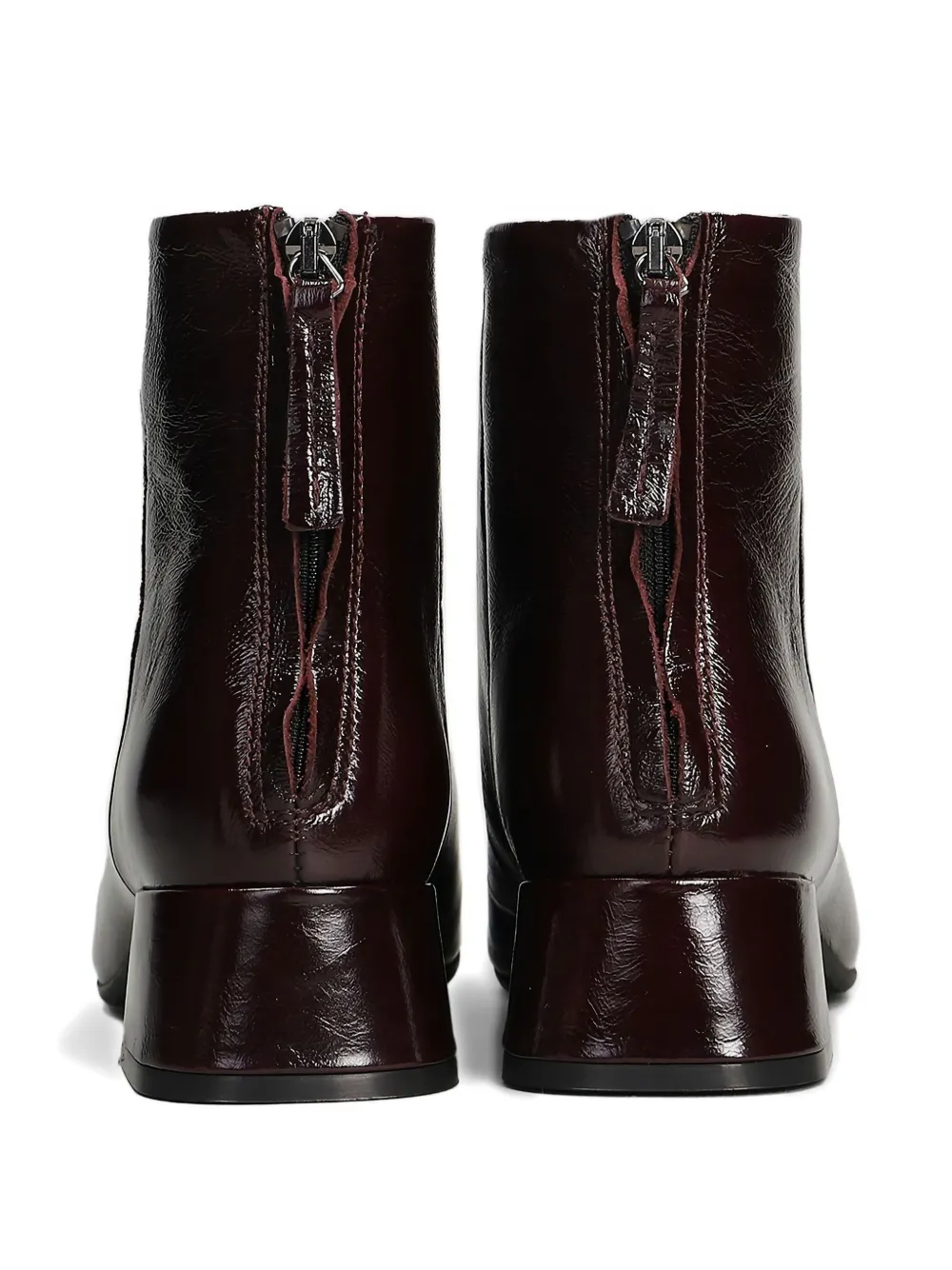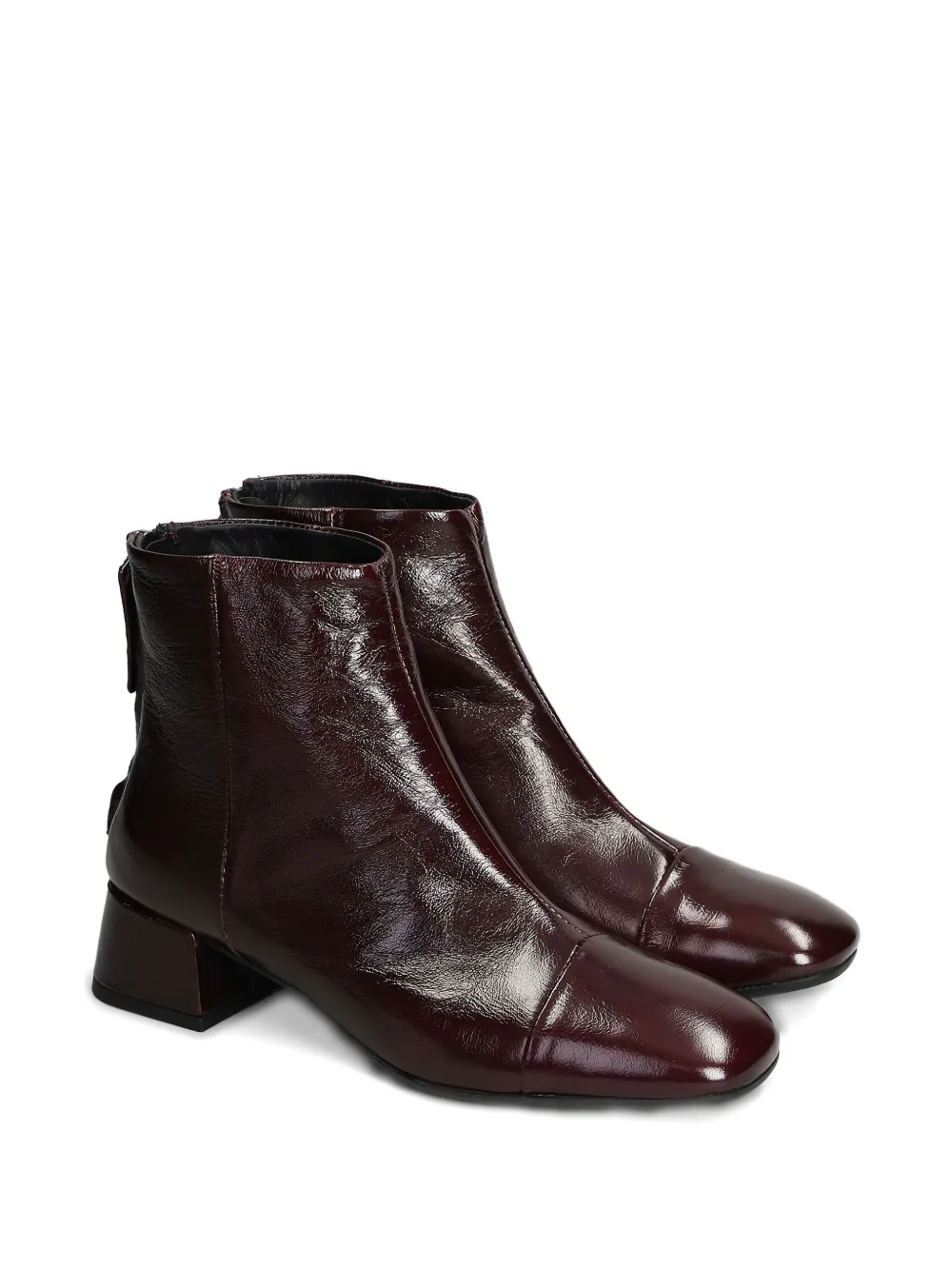 Бордовые блочные каблуки, застежка-молния сзади, квадратный носок, тональная строчка