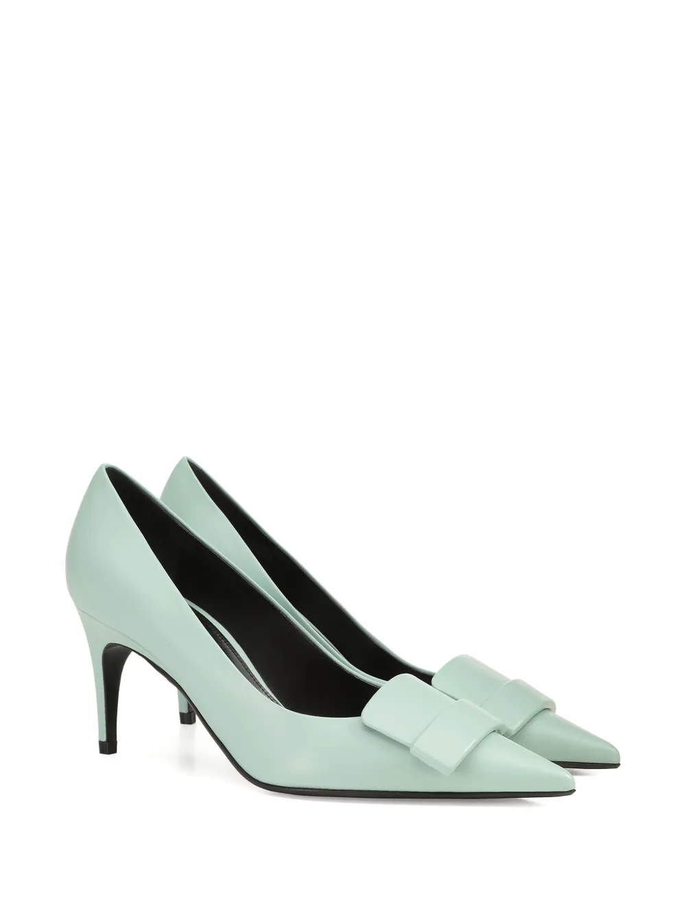 Аквамятные кожаные туфли с заостренным носком и перекрестными ремешками