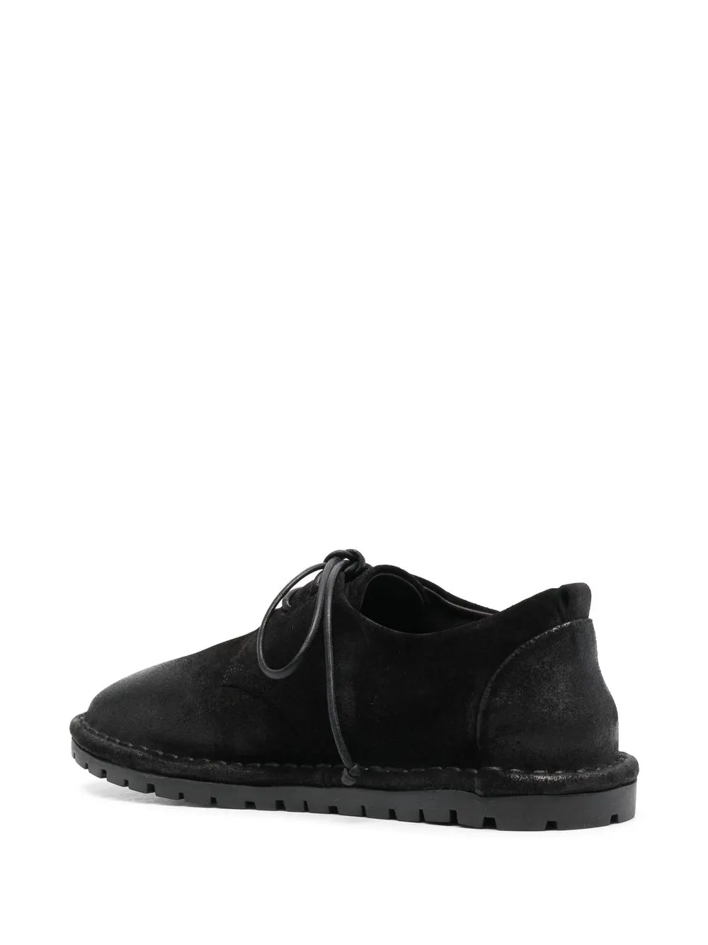 Черный, замша, шнуровка спереди, закругленный носок, кожаная стелька с логотипом и плоская резиновая подошва.